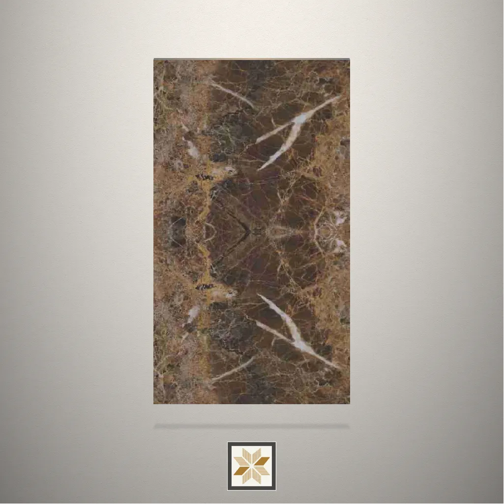 High Gloss Oliviya Italian Stone Brown Laminate (8x4 feet,1 mm): LM-18368