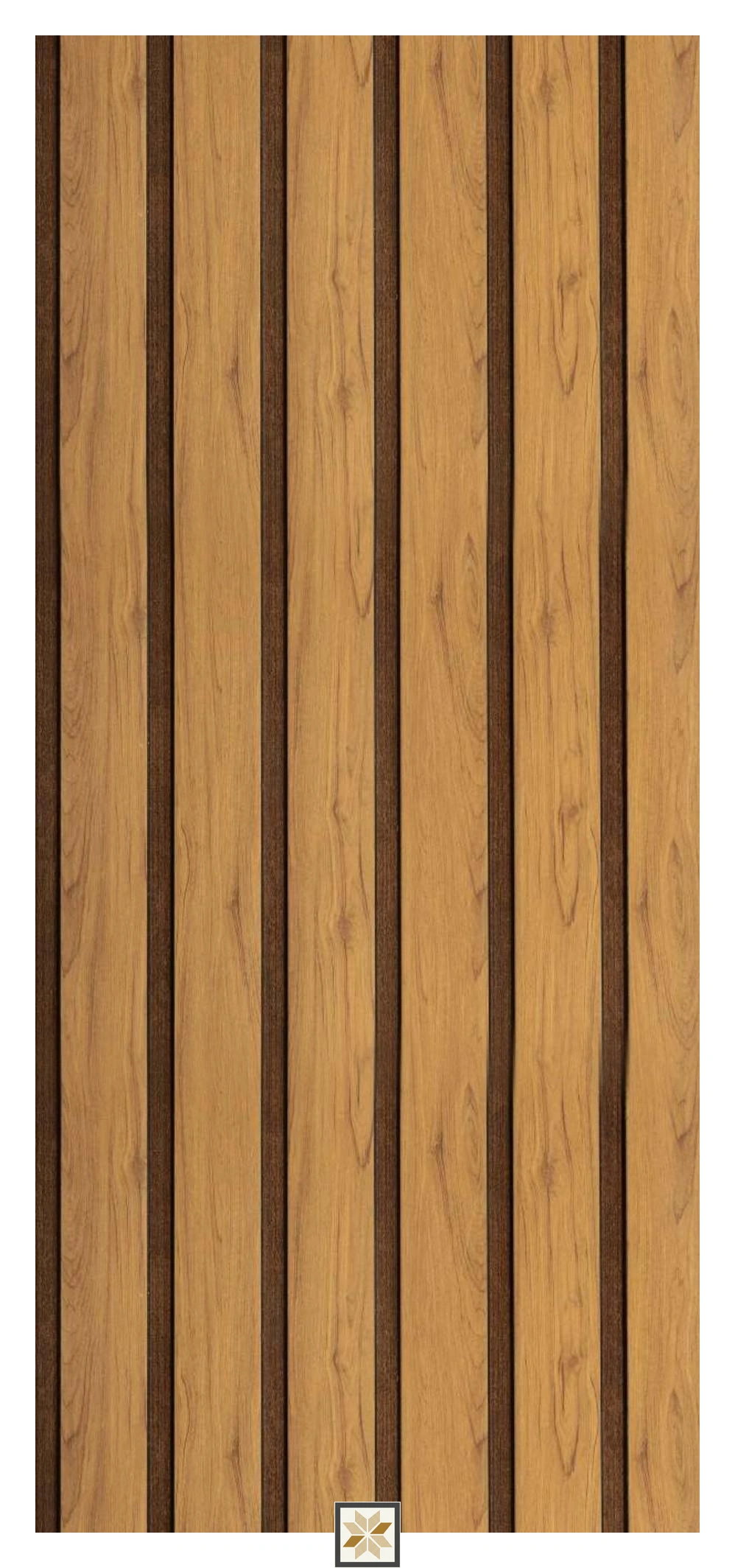 Raj Decor 1206 Copper Pine is part of an elegant Wooden Effect collection — a premium louver/panel in a rich brown copper-pine charcoal finish. Each louvered panel measures 8 ft x 1 ft with 6 mm thickness and is supplied as 1 piece. The louvers feature a 3/4th edge profile, medium wood shade and rustic bottom dual-tone design, providing a natural wood look for indoor installations.