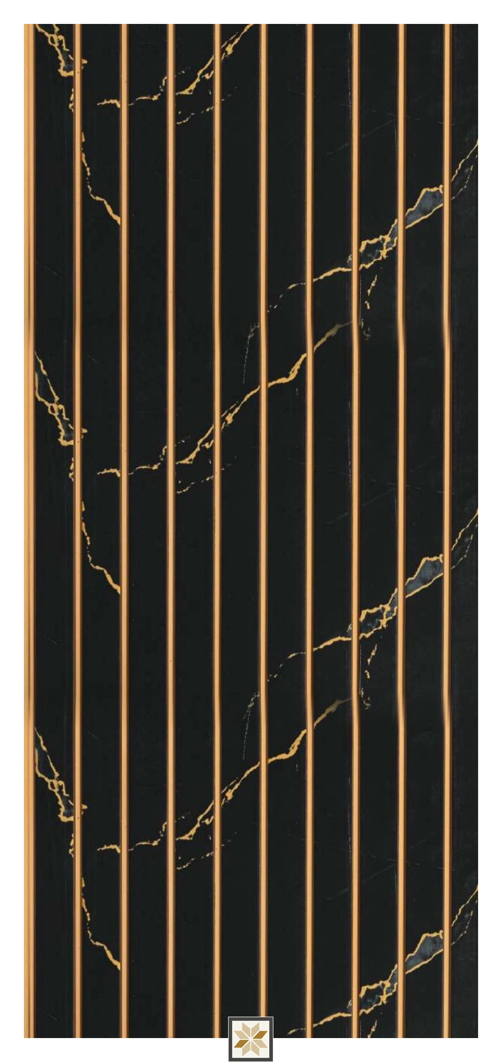 1210 Black Gold Charcoal Louvers/Panels from Raj Decor offer a premium, marble-look finish in rich Black with a Gold-bottom dual-tone accent. These indoor decorative louvers measure 8 ft x 1 ft (8x1 feet) and are 6 mm thick with a 3/4th edge profile. Each pack contains 1 piece, designed for easy installation in both residential and commercial interiors.