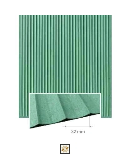 3457 GLO HDHMR Fluted Panel — 8 ft x 4 ft (8x4 feet), 12 mm thickness. Green HDHMR base material panel engineered for indoor use in residential & commercial projects. Sold as 1 Piece per pack. Fluted panel profile provides a modern textured finish while retaining the strength and stability of HDHMR.