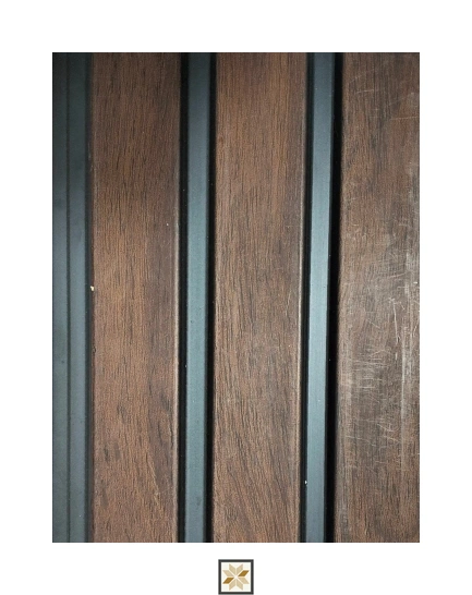 PN 01435 (SKU: LV-21401) Star Mica wooden-effect panel in Brown, offering a premium textured wood look. Panel dimensions: 8 ft x 5.1 inch (8 x 0.42 ft) with 12 mm thickness. Part of the Wooden Effect series, this indoor Star Mica panel delivers a durable, natural wood appearance ideal for wall cladding, louvers and feature installations. Pack quantity: 1 piece. Suitable for both residential & commercial applications.