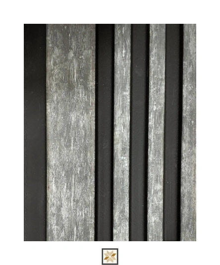 8145 from Star Mica is a premium Grey wooden-effect panel in the Wooden Effect series. Each panel measures 8 ft x 5.1 inch (display size 8x0.42 feet) with a 12 mm thickness and a textured finish that mimics charcoal louvered wood. Designed for indoor use, it delivers high-quality aesthetics and durability and is supplied as 1 piece per pack.