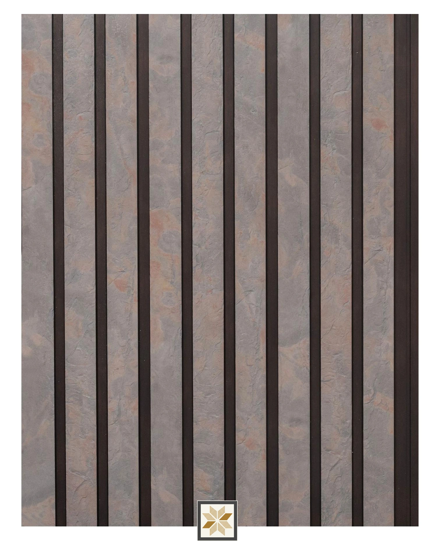 Europratik Cassa Series Stone Louvers/Panels (Grey) — 8 ft x 6.4 in (8x0.53 ft), 12 mm — combine a stone look with practical performance for both residential & commercial interiors. These lightweight, water‑resistant and termite & borer proof panels from the Marbles & Stones series are designed to add uniqueness and a sense of cozy, universal beauty to any interior. The Cassa louvers allow you to define and separate spaces, direct attention to specific features, and maintain overall design cohesion. Each panel features a 3/4th louvers edge profile and a Black Bottom dual‑tone design; sold 1 Piece per pack.