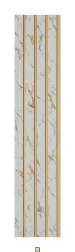 Premium PVC louver panels with a marble appearance, sized 8 ft x 5 inch (8 mm thickness) in White. Features a gold-bottom dual-tone and slim, slim edge profile for a refined look. Indoor-grade, long-lasting and water-resistant construction. Sold as 1 Piece and ideal for both Residential & Commercial projects.
