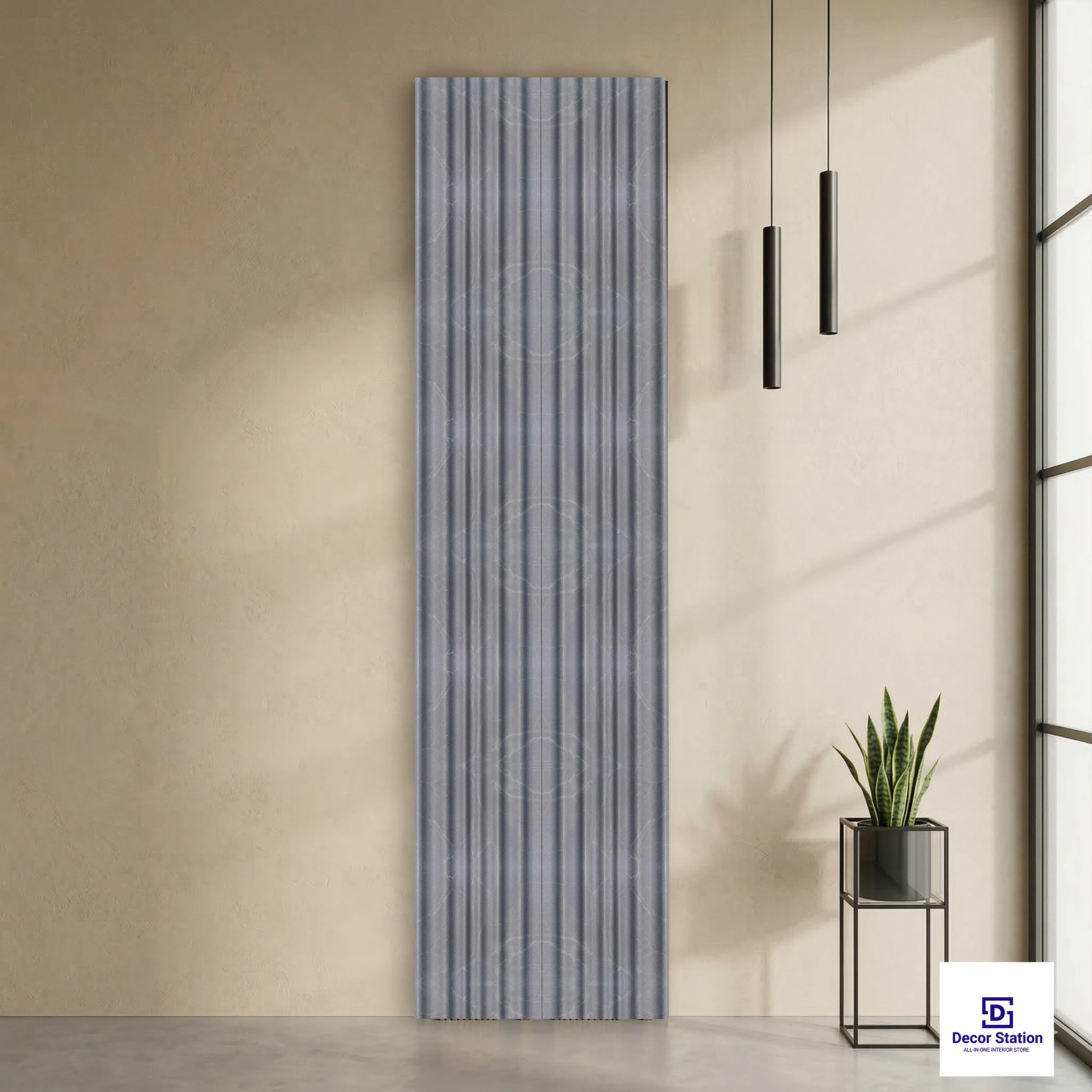 MN-9559 Dark Marble Corrugated Texture Wall Panel is a high-end 3D decorative panel that incorporates a smooth corrugated wave with a dark marble texture. It is made of grey-colored material with small white stripes, giving it the elegance of natural stone. It has curved corrugations that provide a smooth, flowing look to any architecture. It is 9.5 ft x 0.4 ft x 12 mm in size, which is substantial and provides depth. Its smooth curved shape creates shadows that add to its elegance. Highlights: - Smooth corrugated wave design - Dark grey marble texture with small white stripes - Premium quality matte finish - High-profile 3D design - Moisture-resistant - Anti-termite and anti-borer - Easy installation system - Low maintenance - Suitable for indoor decorative wall use Usecases: - Luxury living room feature wall - TV backdrop panel - Bedroom accent wall - Hotel and hospitality industry - Reception and lobby wall - Modern offices