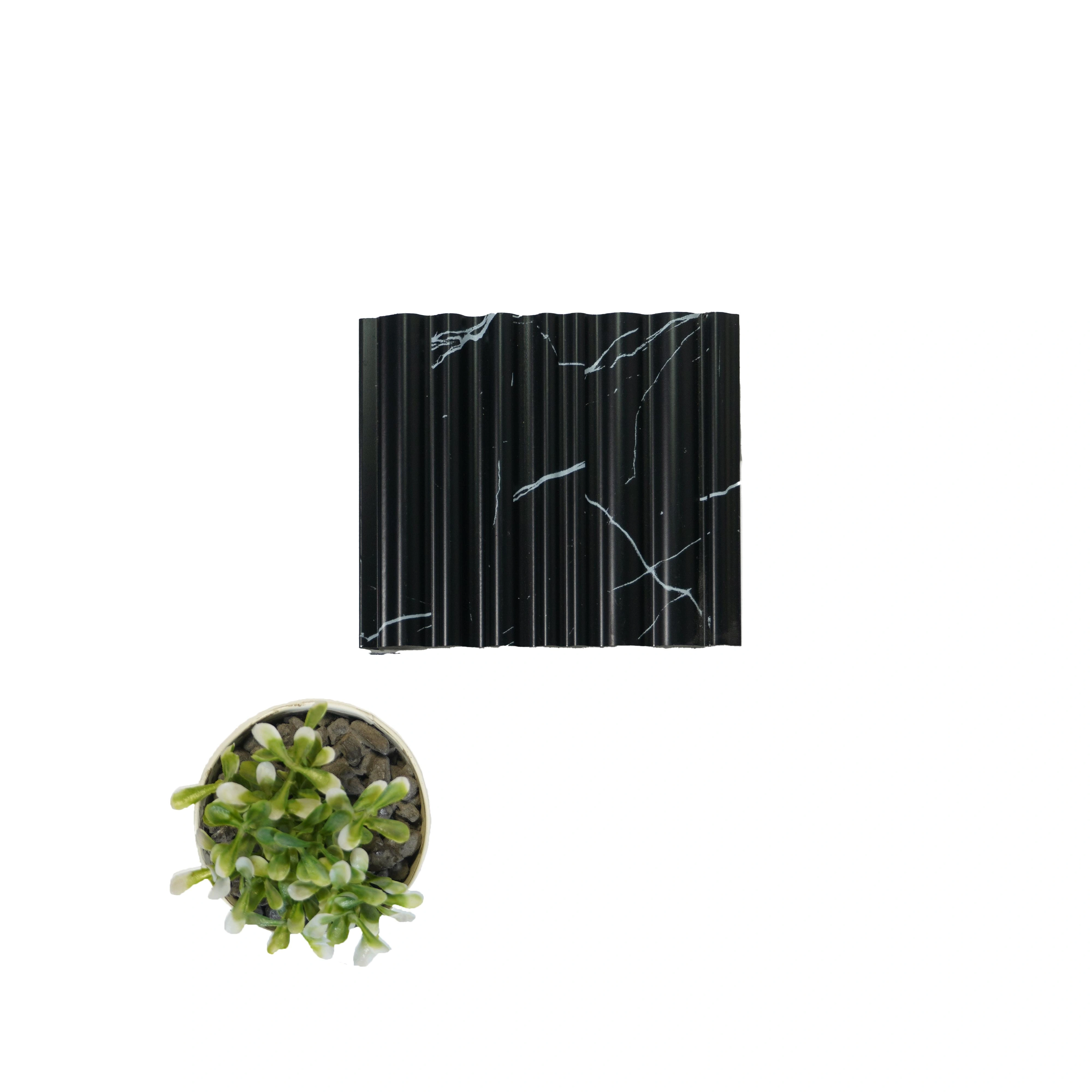 Vivre Panels — Vivre Louver Series Charcoal Louvers/Panels (VL 51) are decorative louvers crafted from high grade polystyrene, sized 8 ft x 5 in (8x0.42 ft) with a 12 mm thickness. Finished in a black marble look with elegant fluted swirls, these indoor panels offer the visual richness of marble while remaining lightweight and simple to install. Designed for both residential & commercial interiors, each pack contains 1 piece and delivers a durable, stylish solution for wall and ceiling applications.