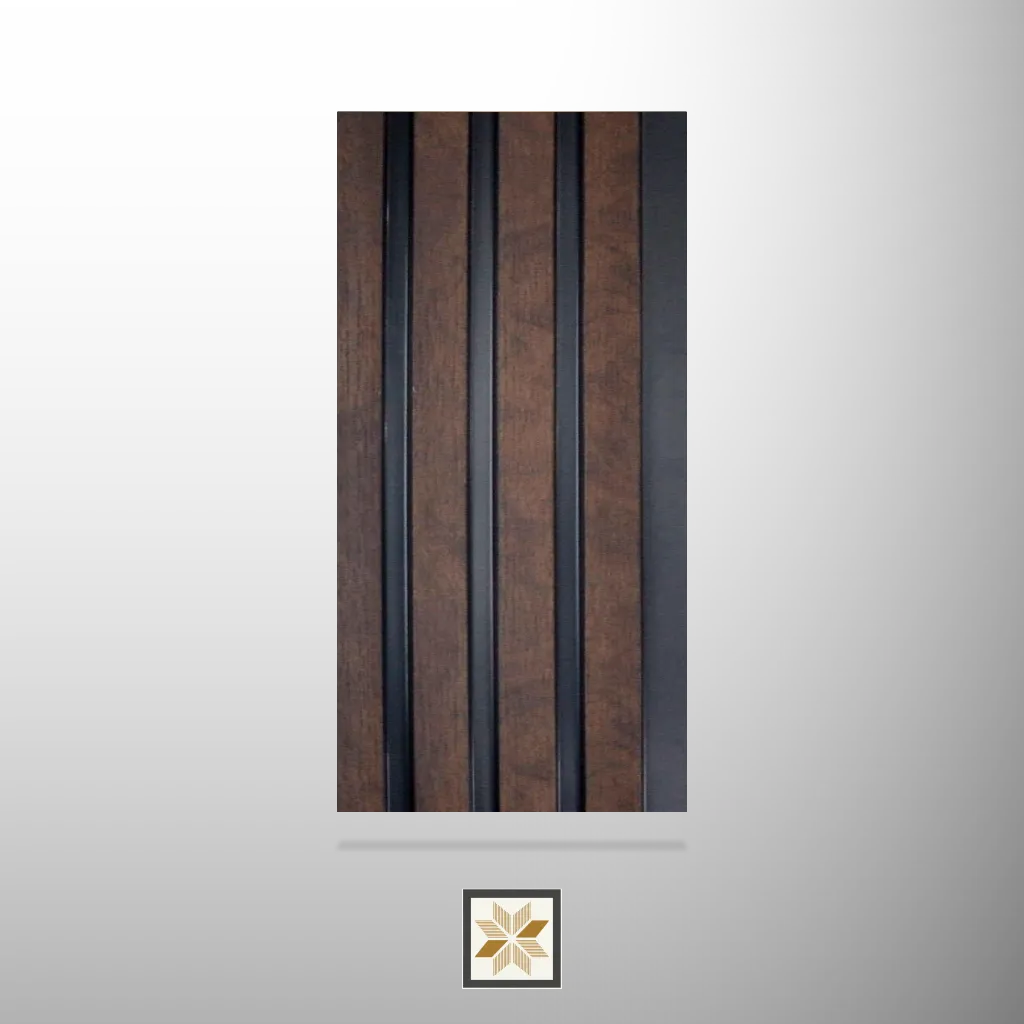 Leon 8 ft x 5 inch (8 x 0.41 ft) Panel — 11 mm thickness from the Wooden Panels series by Leon Laminates. This wood-look, charcoal/Wenge finish louvered panel combines premium aesthetics with dependable build quality for indoor applications. Designed for both residential & commercial projects, the product comes as a single-piece pack (1 Piece) and features a 3/4th louvers edge profile with a Black Bottom dual-tone design for refined visual contrast.