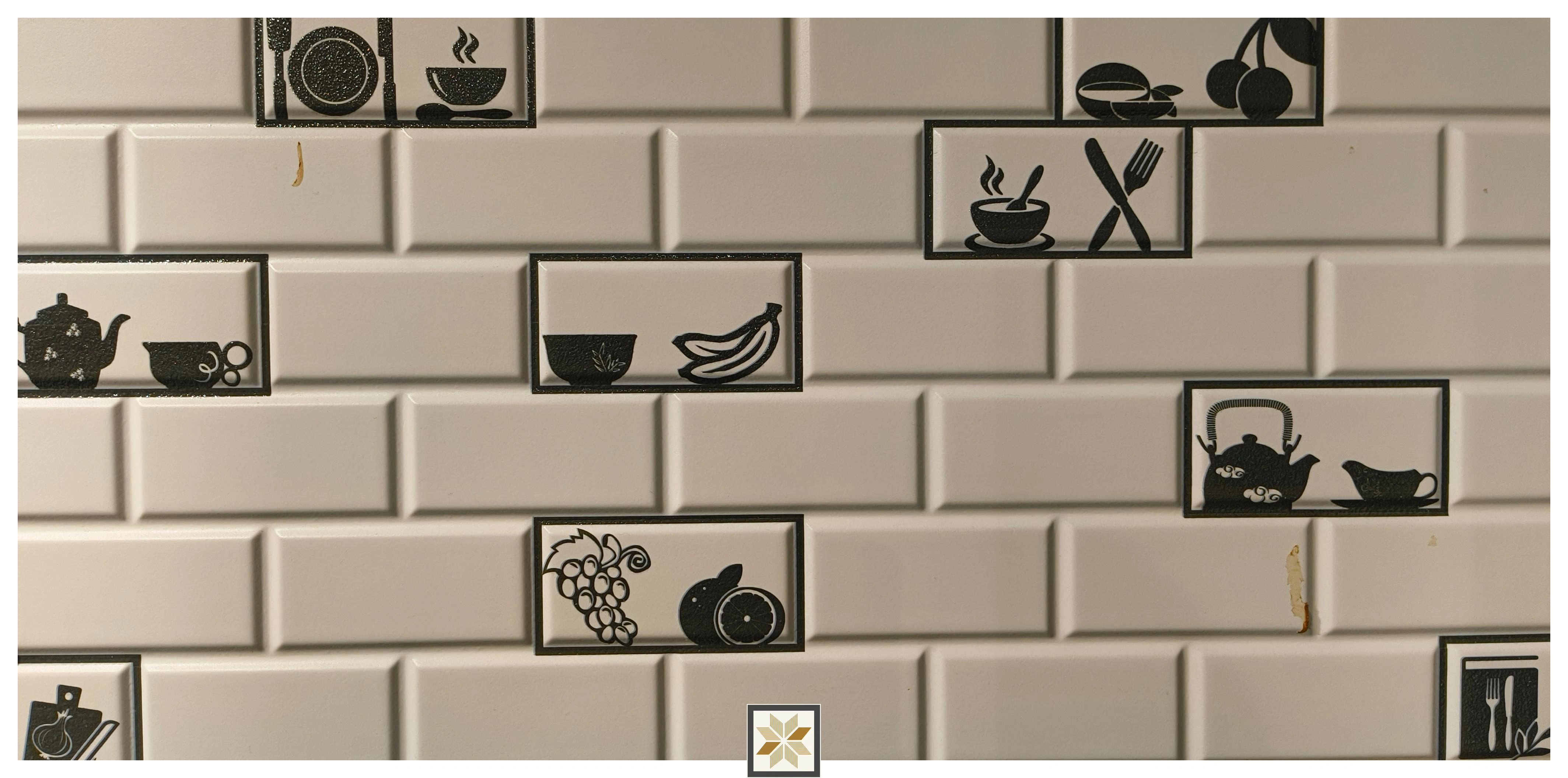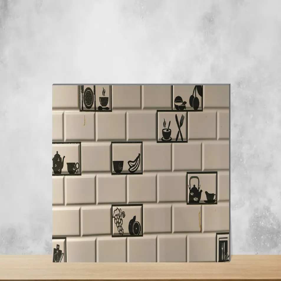 Ceramic Chequered Kettle & Cups Highlighter Tiles Matt Rectangular Tiles TL-2425 (24x12 inch | 8 mm)