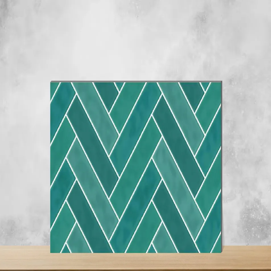 Ceramic Herringbone Solara Seafoam Green Glossy Rectangular Tiles TL-2359-P (24x12 inch | 9 mm)