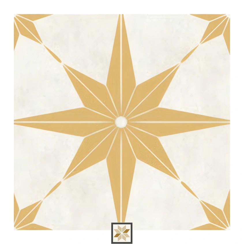 Details: Choco Orange Moroccan-look ceramic vitrified tile in a warm gold tone, 300 x 300 mm (12x12 inch) with a 9 mm thickness. Matte finish from the Morrocans series delivers a Moroccan look suitable for both wall and floor installations in residential and commercial projects. Pack of 10 pieces. Durable ceramic construction with low water absorption, designed for indoor & outdoor use and simple upkeep. Highlights: - Moroccan look with choco-orange/golden color accents for elegant interiors - Matte, non-reflective finish for improved slip resistance and a subtle texture - 300 x 300 mm modular size and 9 mm thickness for long-lasting performance - Ceramic vitrified base material for durability and easy maintenance - Suitable for Wall and Floor applications across residential & commercial settings - Pack quantity: 10 pieces, ideal for seamless installation Usecases: - Flooring in bedrooms, living rooms, offices and light commercial spaces - Feature walls and decorative cladding to create Moroccan-inspired aesthetics - Indoor & outdoor transitional areas such as covered patios and verandas - Retail and hospitality projects seeking a warm gold/matte ceramic tile