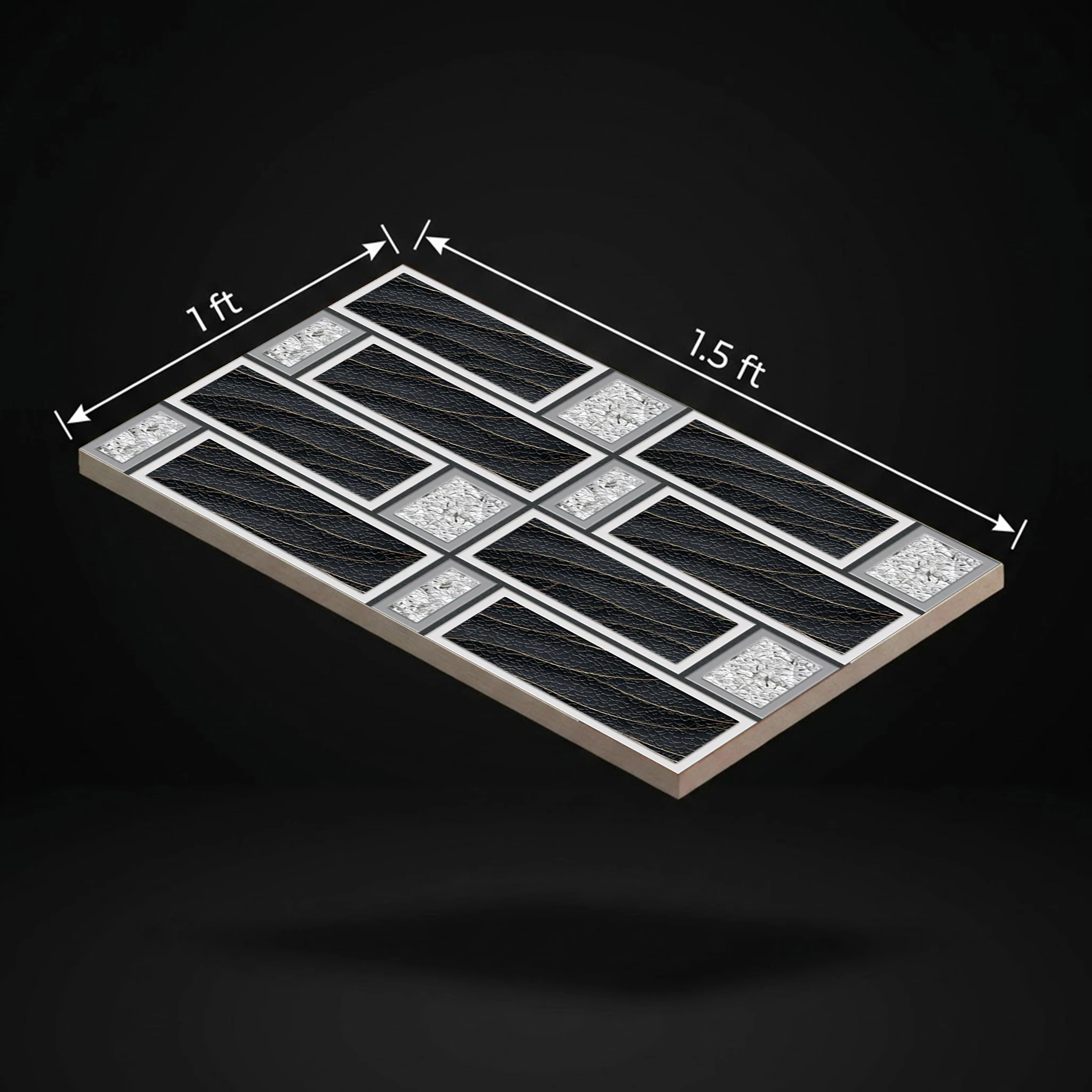 695-EL Glossy Black 3D Elevation 1x1.5 ft 7.5 mm Wall Tile | TL-53039-A