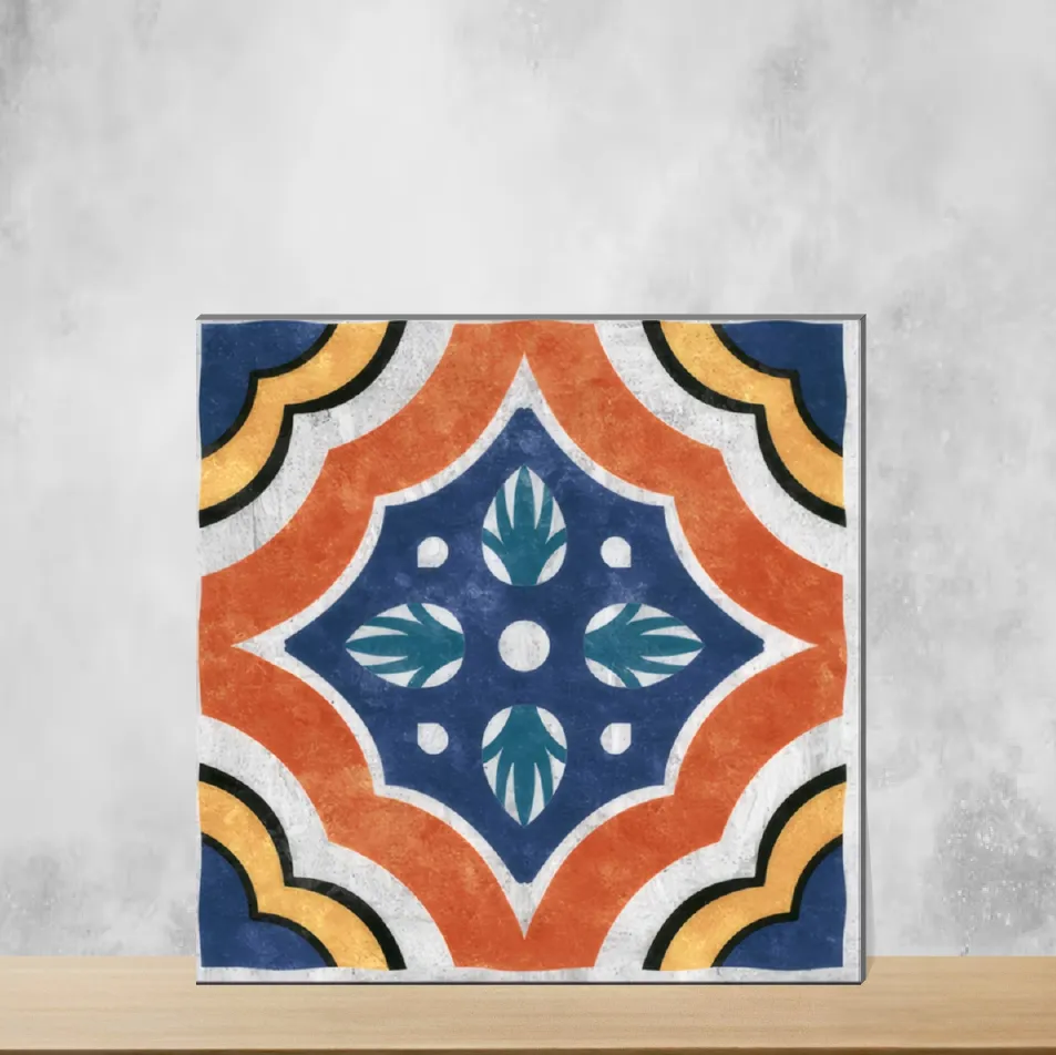 Details: Vibrant Orange & Blue vitrified wall tile sized 300 x 300 mm (12x12 inch) featuring a Moroccan-inspired digital print and a refined matte finish. At 10 mm thickness this designer tile provides sturdy, reliable performance for indoor wall applications in both residential and commercial settings. Pack quantity: 11 pieces. Part of the Morrocans series, it combines traditional Moroccan motifs with contemporary subway-style geometry for eye-catching elevations and feature walls. Highlights: - Vitrified construction for durability and low maintenance - Matte surface reduces glare and is easy to clean - High-resolution digital print for lasting color and detail - Compact 300x300 mm (12x12 inch) format for precise layouts - 10 mm thickness for stable installation - Ideal for indoor, designer tile installations in residential & commercial projects Usecases: - Accent and feature walls in living rooms and bedrooms - Decorative elevations and panels for offices and reception areas - Designer tile treatments in residential interiors and commercial lobbies - Indoor applications where a Moroccan look and Orange & Blue palette are desired