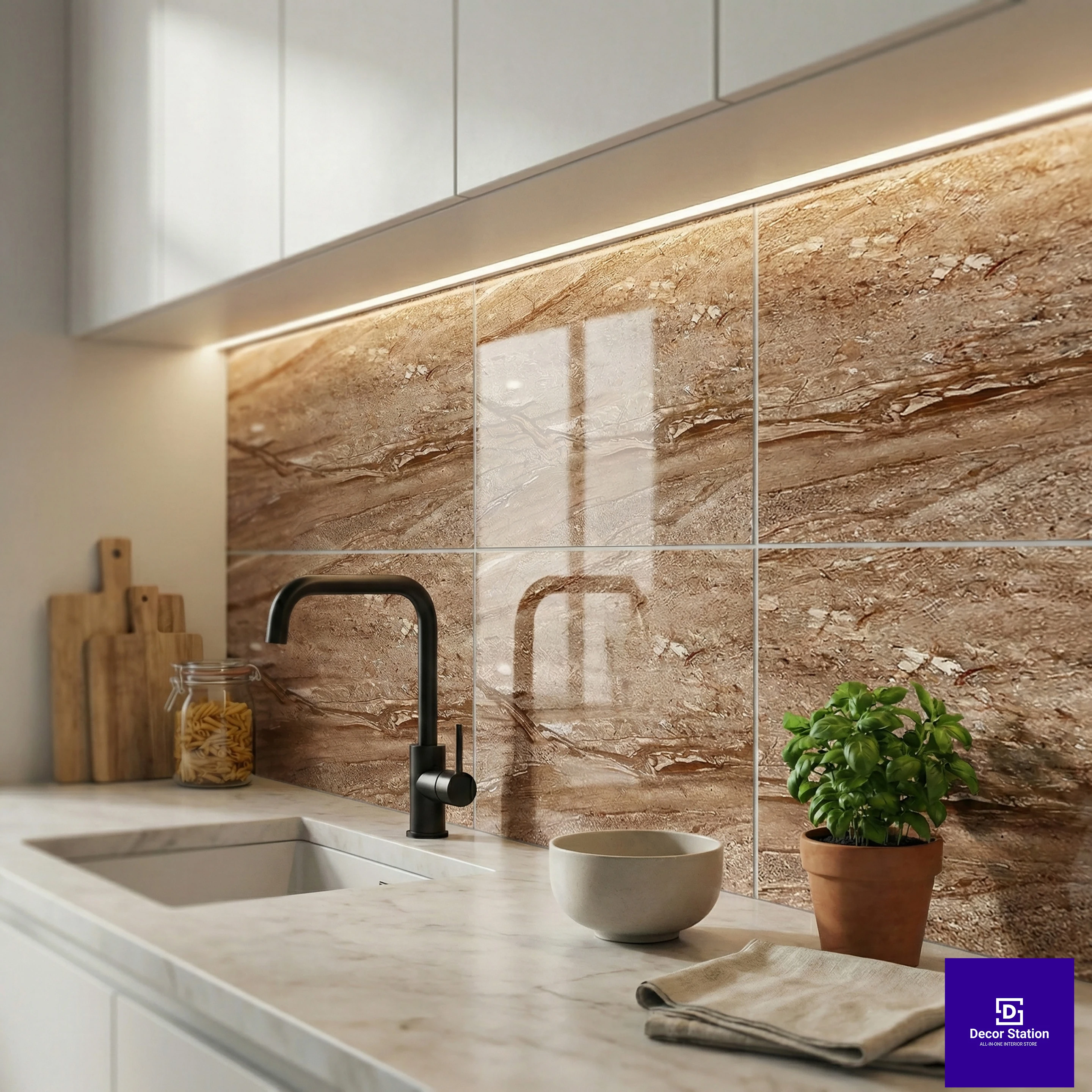 - Kitchen backsplashes and walls