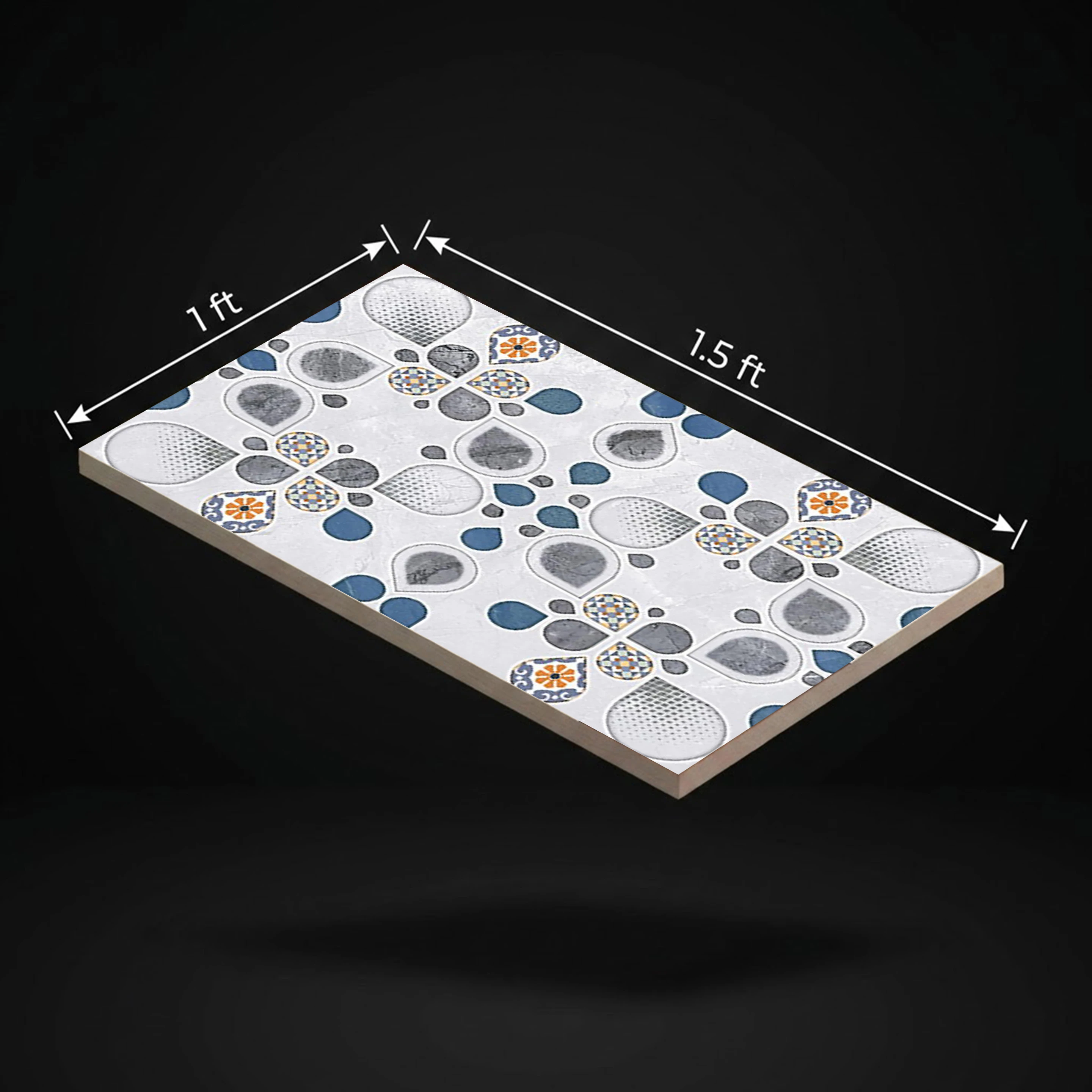 The 9153-HL-A Highlighter Glossy 1x1.5 ft Tile is a decorative ceramic wall tile that offers a fresh, artistic look to modern interior designs. The geometric and floral design pattern, painted in soft greys, whites, and blues with subtle mosaic touches, provides a bright, lively, and beautiful wall design. The design is well-balanced, with an interesting look without being too overpowering, making it perfect for both modern and traditional interior designs. Made from high-quality ceramic materials, this tile has a rectangular shape measuring 300 x 450 mm (1x1.5 ft) with a thickness of 8mm, perfect for indoor wall tiling. The glossy finish enhances the colors and designs, giving you a smooth and easy-to-clean surface, perfect for modern living spaces. Highlights: - Highlighter-style decorative wall tile with geometric and floral designs - Soft grey, white, and blue color scheme with mosaic-style details - Glossy finish for added shine and easy maintenance - Made from high-quality ceramic materials for long-lasting performance - 300 x 450 mm (1x1.5 ft) rectangular tile shape for clean wall design - Smooth and easy-to-clean surface - Perfect for indoor residential and commercial wall tiling Usecases: - Living room accent walls and designs - Kitchen backsplash and dining area walls - Bedroom accent walls - Bathroom walls (dry and vanity areas) - Cafes, boutiques, and modern commercial spaces - Showrooms and decorative wall designs - Office reception and creative workspaces