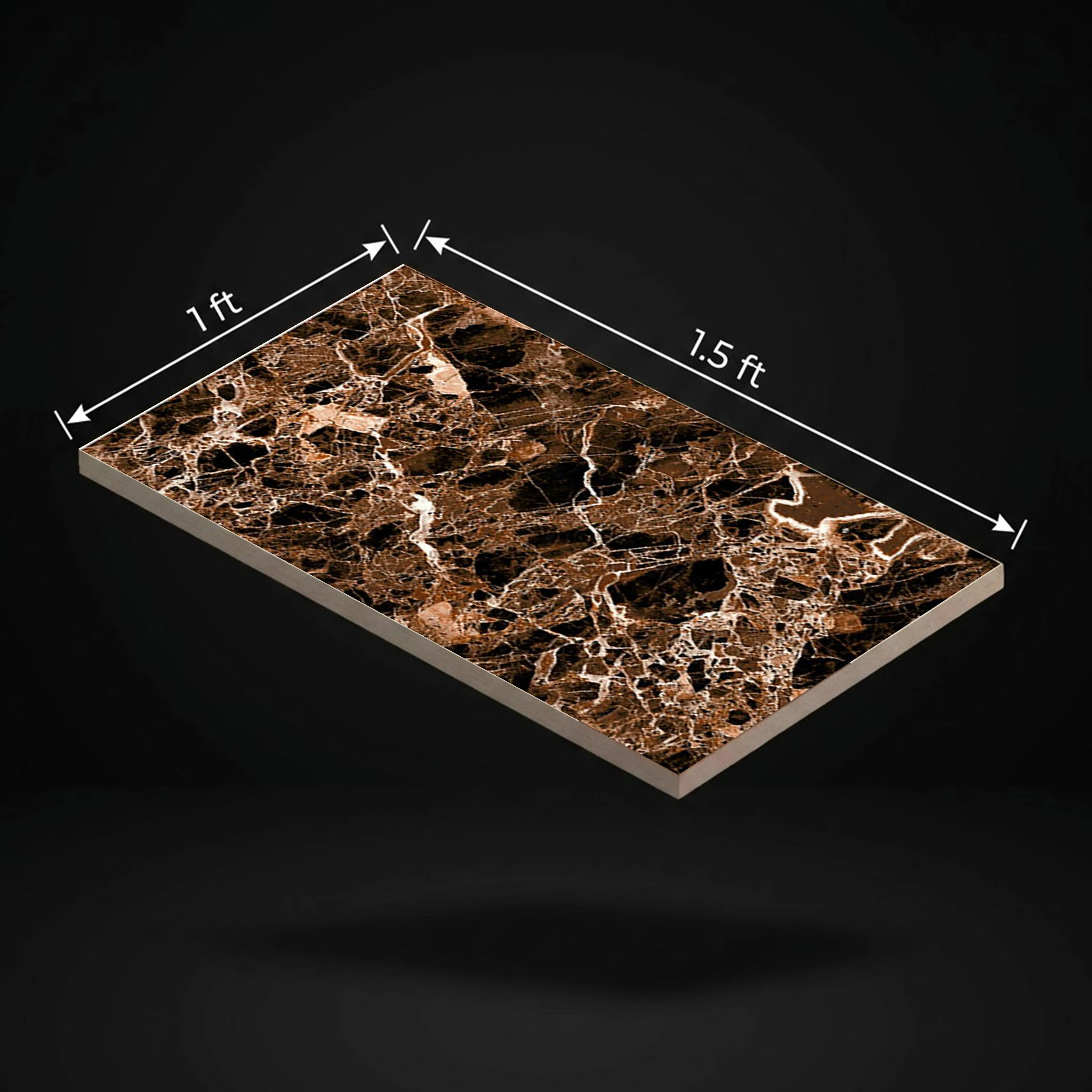 The 9305-D Marble Look High Gloss Tile combines the luxurious look of marble with the brightness of high gloss and the durability of ceramic. The tile features a warm brown marble look that adds elegance and luxury to indoor walls. The tile is made of high-quality ceramic, ensuring durability and easy maintenance. The high gloss finish makes the tile shine and reflects light, making the marble details, created by digital printing, stand out. The tile measures 1x1.5 ft (300x450mm) with a thickness of 8mm and is flat and rectangular in shape, ideal for wall installations. The tile comes in a pack of 6 and is strictly for indoor wall use. Highlights: - The tile features a warm brown marble look that is elegant and luxurious. - The tile has a high gloss finish that makes it shine and reflects light, making the marble details stand out. - The tile features marble details created by digital printing. - The tile is made of high-quality ceramic that is durable and easy to maintain. - The tile is flat and rectangular in shape, ideal for wall installations. - The tile is specifically designed for indoor wall use and is ideal for both residential and commercial settings. Usecases: - Bathroom walls and vanity backsplashes - Kitchen walls and backsplash areas - Living room feature walls - Bedroom accent walls - Office cabins and other commercial interior walls The 9305-D Marble Look High Gloss Tile combines the elegance of marble, the brightness of high gloss, and the durability of ceramic, making it a stylish and elegant choice for indoor wall design.