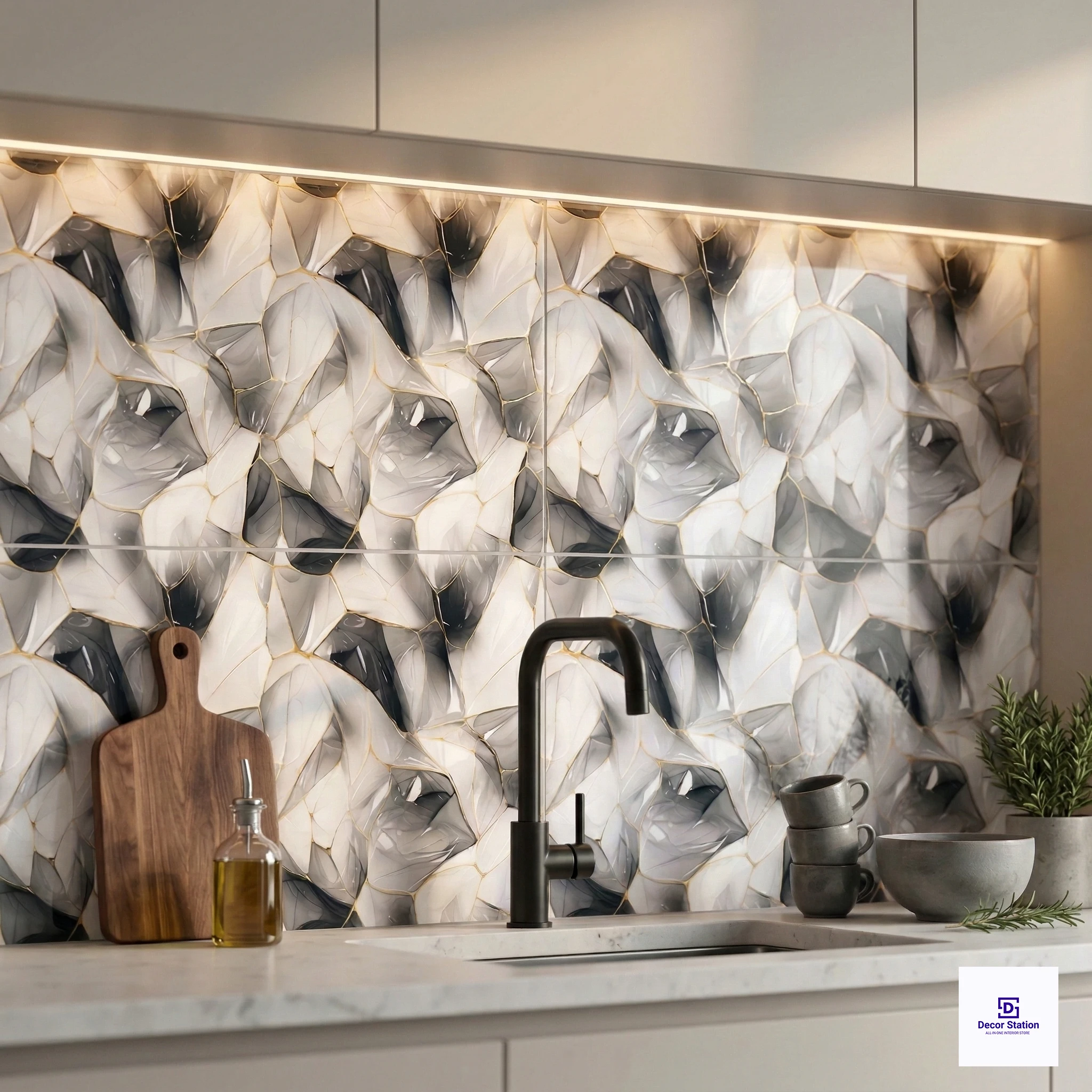The 9573-D Patterned High Gloss 1x1.5 ft Tile is a high-end ceramic wall tile designed to incorporate a modern and artistic look into a room’s interior design. Featuring a grey geometric and abstract pattern on its design, this tile brings depth, motion, and a modern touch to any room’s walls. Composed of high-quality ceramic materials, this 300x450 mm (1x1.5 ft) rectangular-shaped tile has a thickness of 8 mm, providing durability and strong indoor performance. The high gloss finish of the tile accentuates its intricate geometric design and provides a brighter and more dynamic appearance. Engineered to be used on walls, this tile is ideal for both residential and commercial indoor applications. Packed in sets of 6, this flat finish decorative tile combines modern design and easy maintenance, making it perfect for modern wall designs. Highlights: - Modern geometric and abstract design in a sophisticated grey - High gloss finish for an added touch of elegance and brightness - Durable ceramic material for long-lasting performance - 300x450 mm rectangular shape versatile for wall designs - Flat finish with easy cleaning and maintenance - Designed for indoor residential and commercial wall applications Usecases: - Bathroom walls and decorative backsplashes - Living room walls and feature panels - Bedroom walls and accent panels - Foyer and hallway walls with decorative designs - Commercial indoor walls requiring a modern geometric design finish