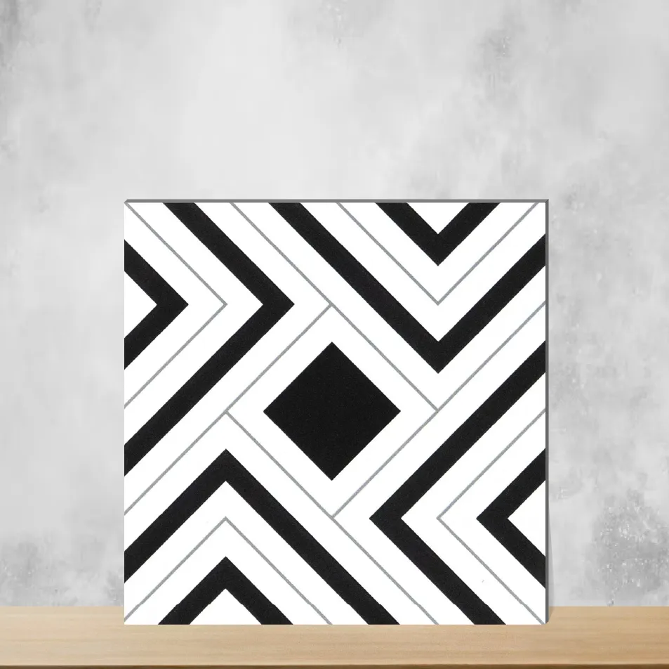 Details: Bring abstract geometric style into interiors with the Base & Bloom Collection Abstract Floor Tile in Geometric Black & White. Made from durable ceramic with a matte finish, this 12x12 inch (1 ft x 1 ft) tile features a 9 mm thickness that balances strength and appearance for indoor residential and commercial use. The compact square format and multi-colour geometric look suit single-bonded floor areas and flexible design layouts. Pack quantity: 11 pieces. Ideal for coordinated schemes within the Geometric & Abstracts series. Highlights: Ceramic body engineered for long-lasting durability and performance. Matte finish provides a subtle, sophisticated appearance while reducing glare. Compact 12x12 inch (1 ft x 1 ft) tiles allow flexible patterning and modular layouts. 9 mm thickness ensures durability for floor application without sacrificing aesthetics. Easy to clean and install; designer abstract look works well in contemporary and classic interiors. Usecases: Bathroom floors and accent walls — suitable for creating a striking abstract bathroom finish or basin/vanity wall. Kitchen backsplashes above counters to add pattern and character to cooking spaces. Highlighter and focal walls in living rooms, dining areas or bedrooms to transform the space. Indoor settings including living room, bedroom, kitchen, dining, office and covered balcony or patio areas; also suitable for shower area accents and accent walls in commercial interiors.