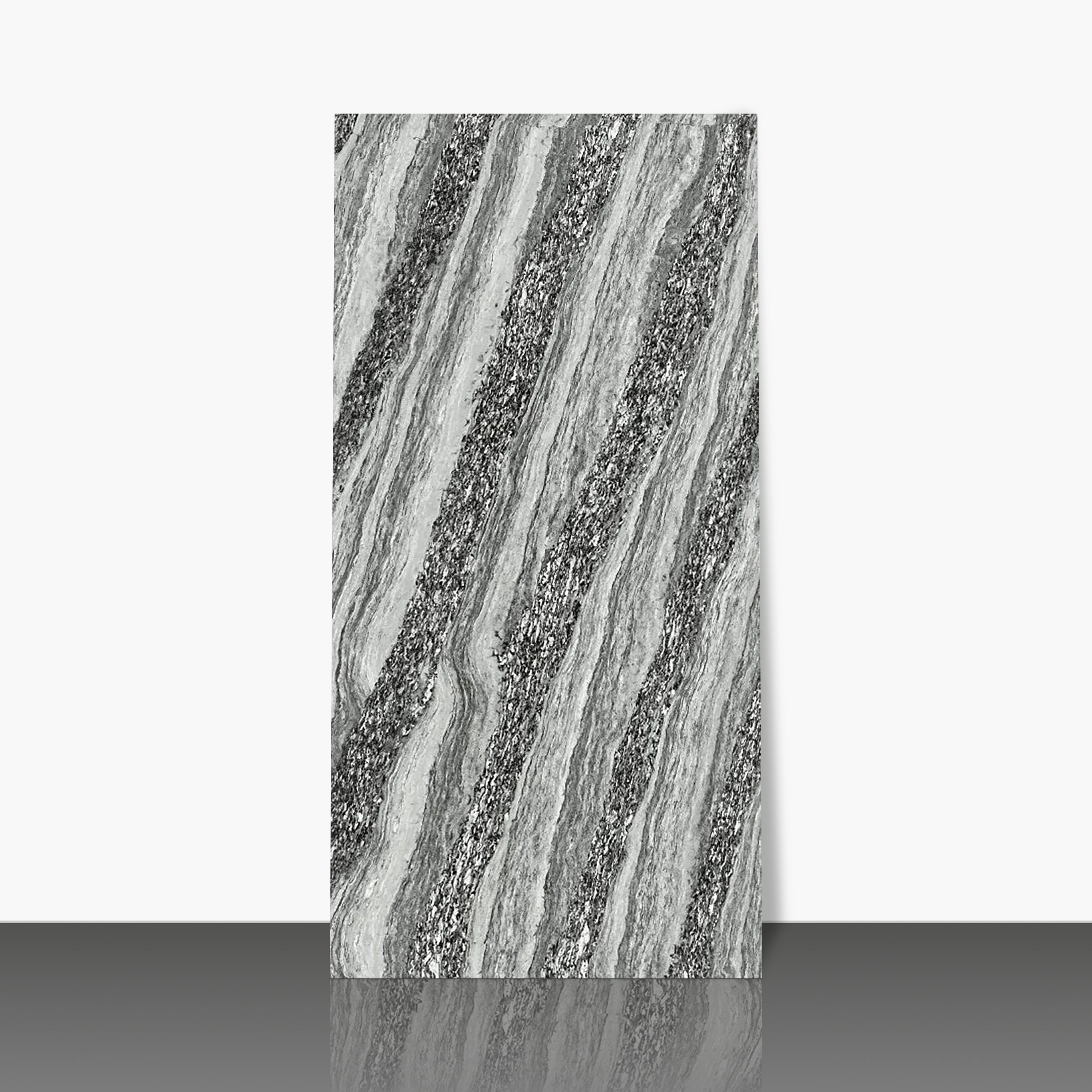 Vitrified Dualcore Smoke Grey Marbles & Stones Glossy Rectangular Tiles TL-2568 (4x2 feet | 9 mm)