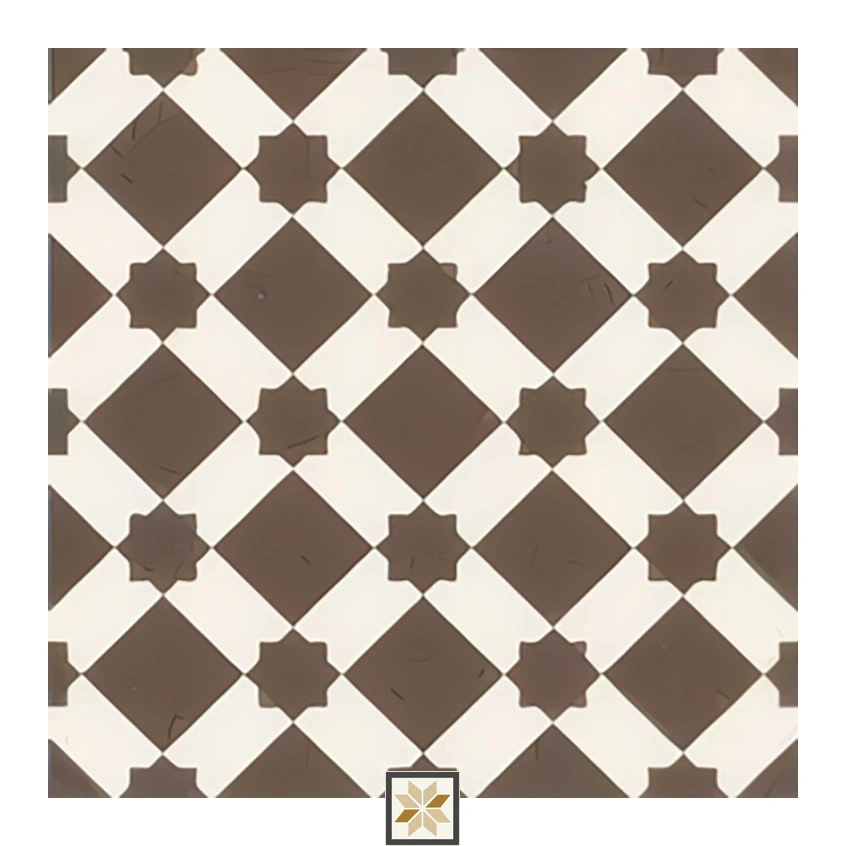 Centre 300 x 300 mm (12x12 inch) ceramic floor tile from the Morrocans series, featuring a brown Moroccan digital design with a matte finish. At 9.5 mm thickness and supplied in packs of 11 pieces, this centre tile is engineered for both residential & commercial flooring needs. Suitable for indoor and outdoor use, it preserves the authentic Moroccan look while providing a durable ceramic solution for floors and high-traffic areas.