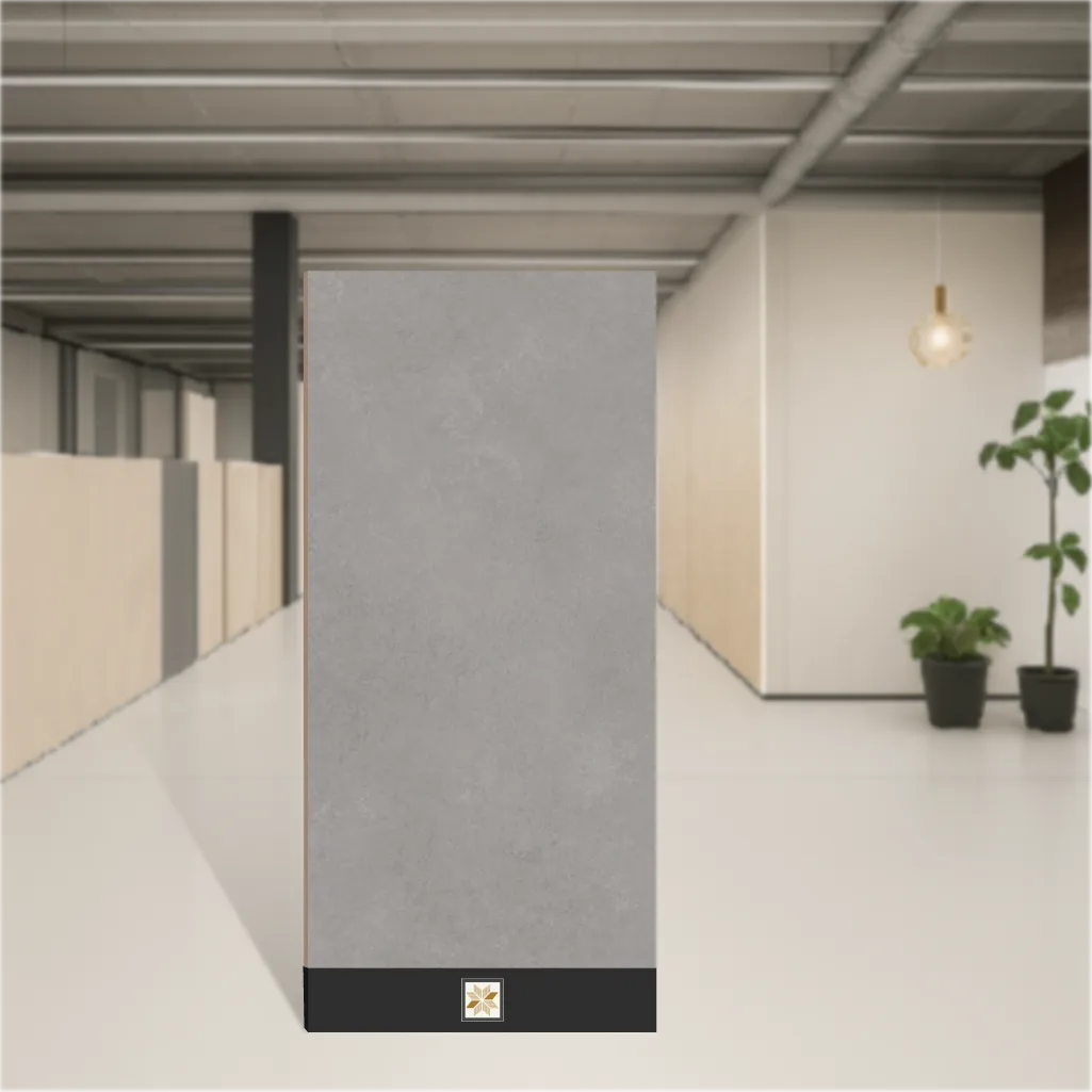Details: Cement Floor & Wall Tile in Aqua Stone Grey from the Cement Look series. Vitrified construction with Drew Grit matte finish to replicate a natural cement appearance. Large-format 4 ft x 2 ft (1200 x 600 mm) tiles at 9 mm thickness, supplied in packs of 2 pieces and available in 12 random designs. Designed for both floor and wall applications in residential & commercial projects, suitable for living room, bedroom, bathroom and kitchen installations. Highlights: - Cement-look aesthetic in Aqua Stone Grey with Drew Grit Matte Finish for authentic texture and muted tones. - Vitrified base material: water resistant, fire retardant, long-lasting and durable for high-traffic areas. - Large 4x2 ft size reduces visible grout lines and speeds up installation. - 9 mm thickness provides a strong, stable tile appropriate for floors and walls. - 12 random designs offer natural variation for a realistic cement appearance. Usecases: - Living room and bedroom flooring to achieve a contemporary cement-look interior. - Bathroom walls and floors where water resistance and durability are essential. - Kitchen floors and feature walls requiring easy-to-clean, resilient surfaces. - Commercial applications such as lobbies, offices and showrooms seeking a durable cement aesthetic.