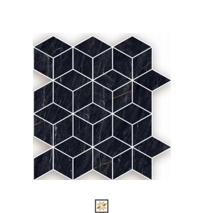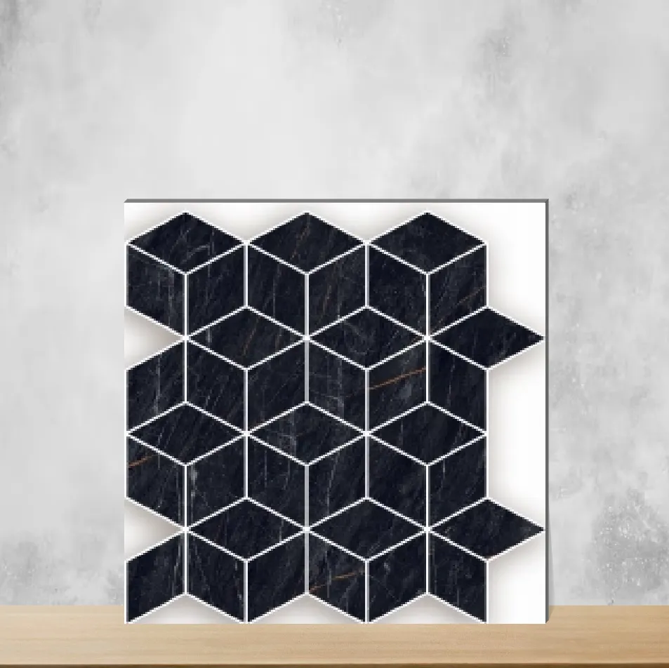 Vitrified Diamond Black Hexagonal Tiles Hi-Glossy Rectangular Tiles TL-6193-B (14x12 inch | 10 mm)