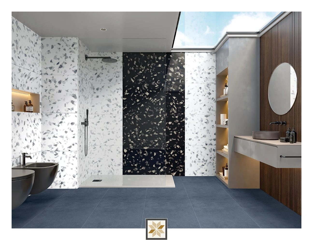 - Commercial interiors such as showrooms, lobbies and retail areas where a durable, attractive tile is required