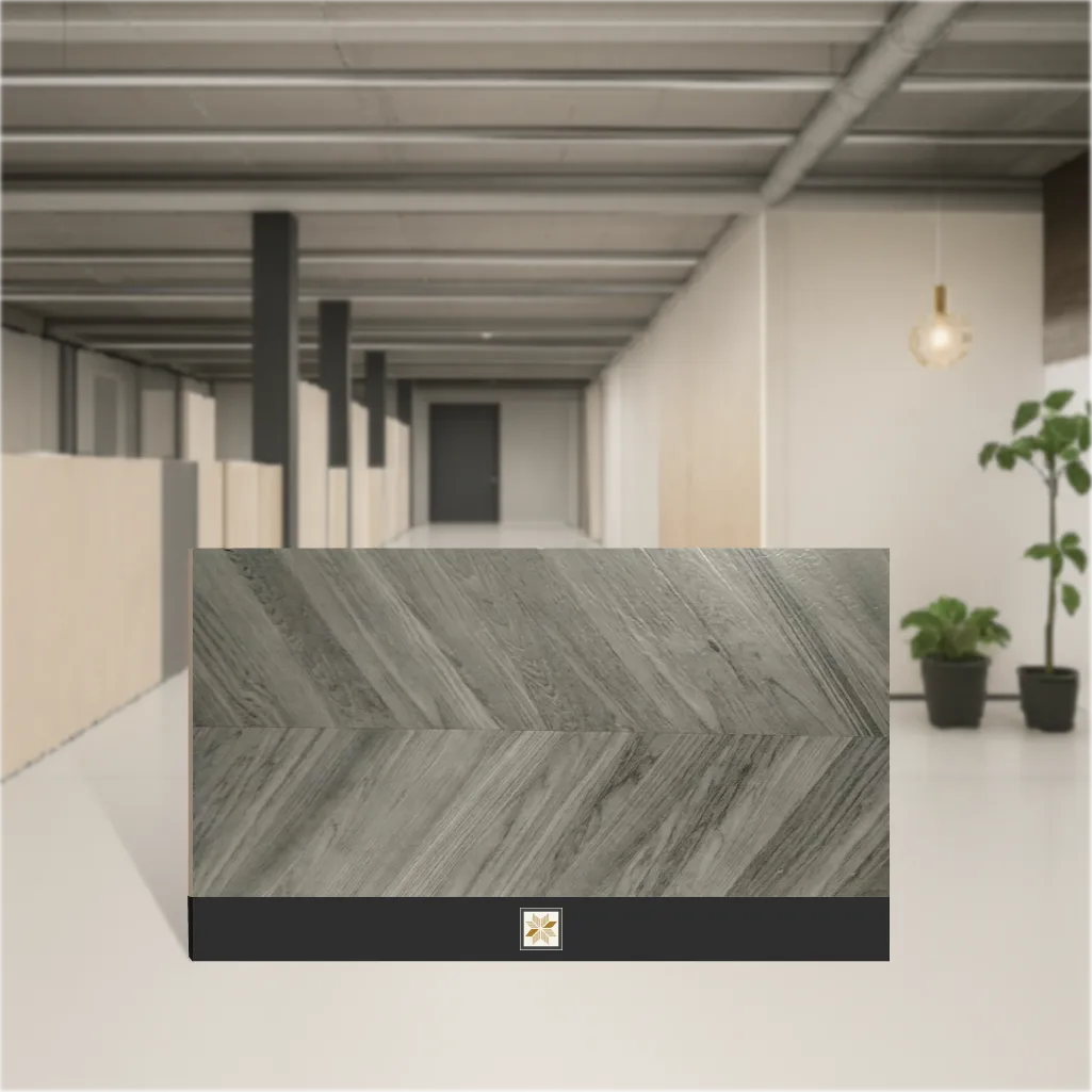 Details: Chevron Wood Nero vitrified tile in 1200 x 600 mm (4x2 feet) format, 9 mm thickness, featuring a carved matte finish that recreates a warm wooden look. This brown, wood-look tile from the Wooden Effect series presents a chevron texture (Nero styling) suitable for both floor and wall installations. Made from durable vitrified material for long-lasting performance in residential & commercial projects. Available in packs of 2 pieces. Highlights: - Large 1200x600 mm planks (4x2 feet) for a seamless wood appearance - 9 mm vitrified body for enhanced strength, low maintenance and stain resistance - Carving matte finish with chevron wood texture for an authentic wooden effect - Versatile for indoor & outdoor use and built to handle moderate to heavy traffic - Ideal brown wood-look tile for contemporary and classic interiors Usecases: Perfect for flooring and accent walls in living rooms, bedrooms and offices; also suited to commercial spaces such as retail and hospitality. Use this tile to achieve the warmth and grain of wood without the upkeep of real timber—excellent for residential & commercial floor and wall applications, indoor and covered outdoor areas.