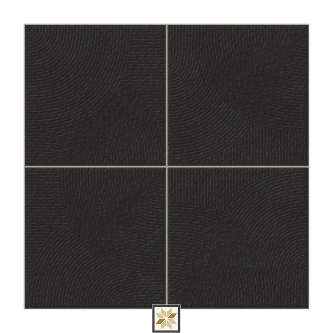 Ceramic Tones Circlet Black Punch Textures Glossy Square Tiles TL-6885-C (12x12 inch | 9 mm)