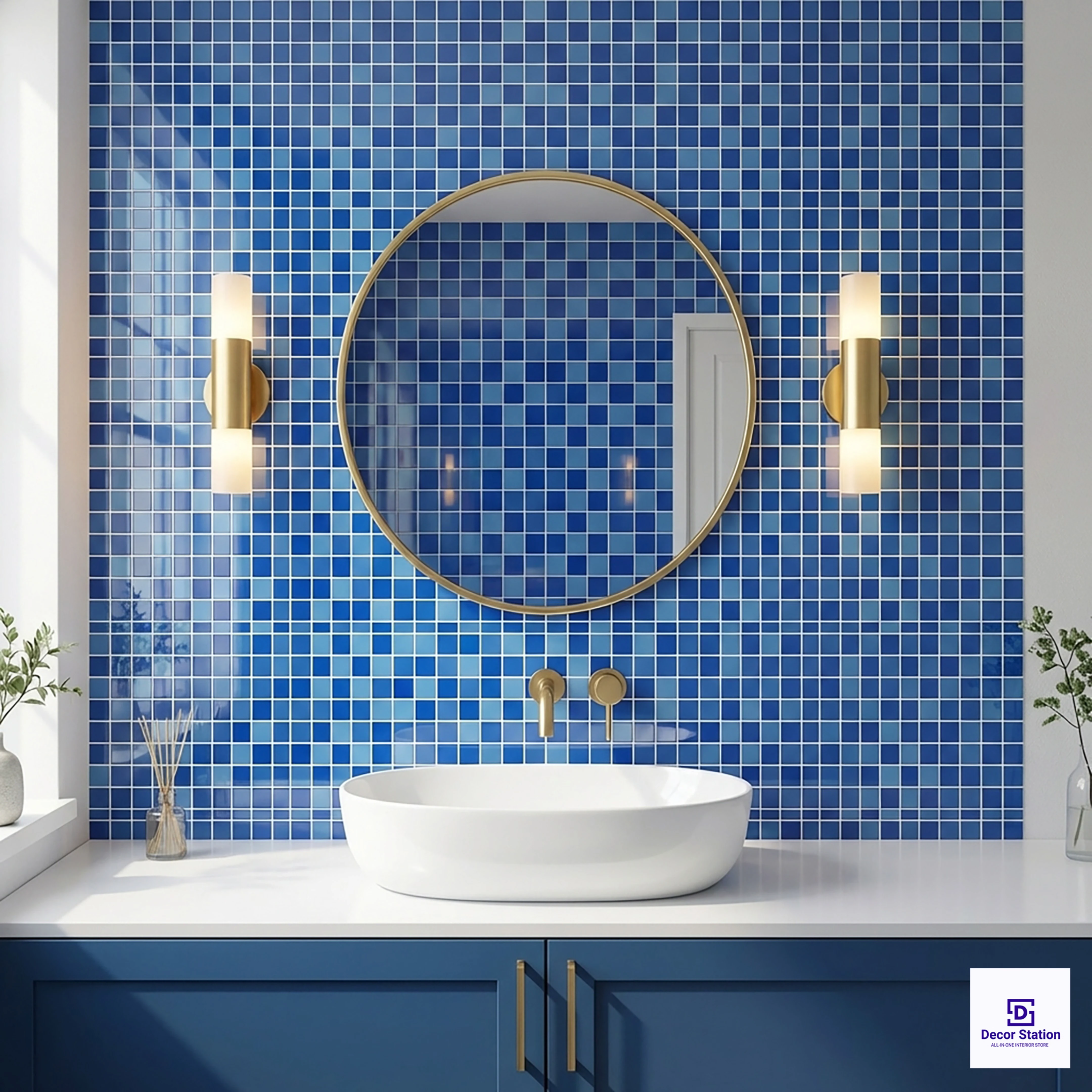 CMT 25 201 Blue Mosaic Glossy Pool 1x1 ft 4mm tile is a digital wall tile with a glossy finish, featuring a mosaic design with elegant Blue tones. It has a size of 300x300 mm (1x1 ft) with a thickness of 4 mm, making it suitable for both indoor and outdoor use. This square tile has a glossy finish, which provides a luminous, glossy surface ideal for pools and wet areas while ensuring easy maintenance.