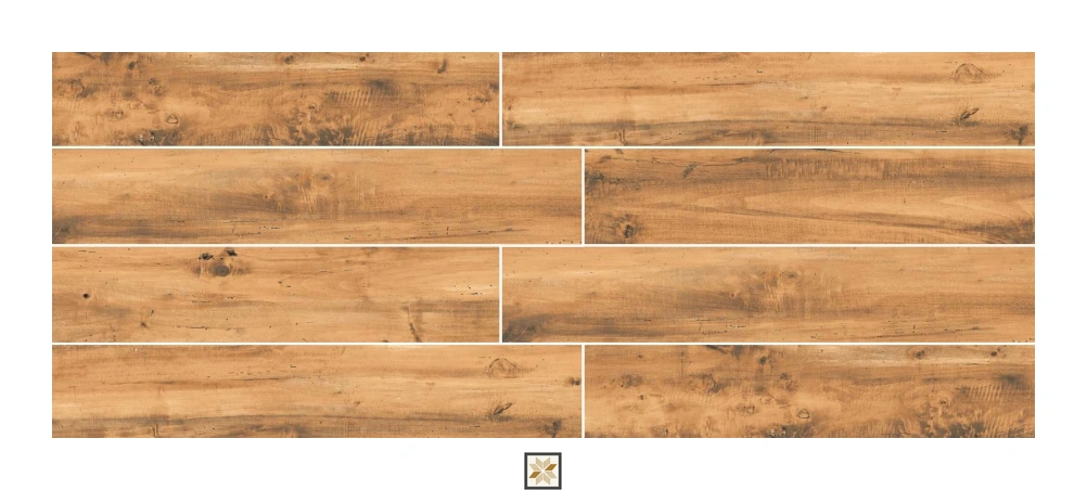 Details: Brown Wood Tile in the Copper Tuscany finish — a wooden-effect vitrified tile sized 48x8 inch (1200 x 200 mm / approx. 4 ft x 7.8 inch) with a carved, matte surface. At 9 mm thickness, this vitrified wood-look tile delivers a durable, low-porosity finish that is easy to maintain and suited for both residential & commercial projects. Supplied in packs of 5 pieces, the brown Copper Tuscany shade preserves natural wood aesthetics while offering the technical benefits of vitrified porcelain. Highlights: - Brown wood-look Copper Tuscany design with carved matte finish for authentic texture - Vitrified base material for high strength, low water absorption and easy cleaning - Dimensions: 48x8 inch (1200x200 mm); Thickness: 9 mm - Pack quantity: 5 pieces; Series: Wooden Effect - Ideal for heavy-use areas thanks to robust construction and slip-resistant carved surface Usecases: Perfect for flooring in parking areas and terraces, as well as patios, balconies, commercial lobbies, corridors, living rooms and showrooms where a wood appearance with the durability of vitrified tiles is required.