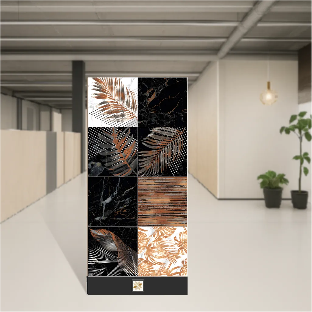 Details: Tropical Florals collection wall tile that marries delicate floral motifs with robust vitrified engineering. This 4x2 feet (1200x600) black designer tile is 9 mm thick and features a high-gloss, easy-to-clean surface that delivers water and stain resistance for long-lasting performance. The large-format panels minimize grout lines and create a sleek, contemporary look ideal for indoor & outdoor wall installations in both residential and commercial projects. Highlights: - Tropical Florals design: elegant floral patterns that bring a natural, tropical touch to any wall. - Vitrified construction for enhanced durability, scratch resistance and moisture protection. - High-gloss finish for a refined, designer appearance and simple maintenance. - Large 4 ft x 2 ft (1200x600) format reduces grout lines and accelerates installation. - 9 mm thickness balances lightweight handling with structural strength. - Suitable for wall use only; perfect for living room, bedroom, bathroom and public interiors. Usecases: - Living room accent walls or feature panels to create a striking focal point. - Bedrooms to introduce a calming, nature-inspired ambience. - Bathrooms and washrooms where moisture resistance and easy cleaning are essential. - Hotel lobbies, offices, dining areas and other commercial interiors seeking a sophisticated, designer tile solution. - Residential and commercial wall cladding projects that require stylish, durable, tropical-themed tiles.