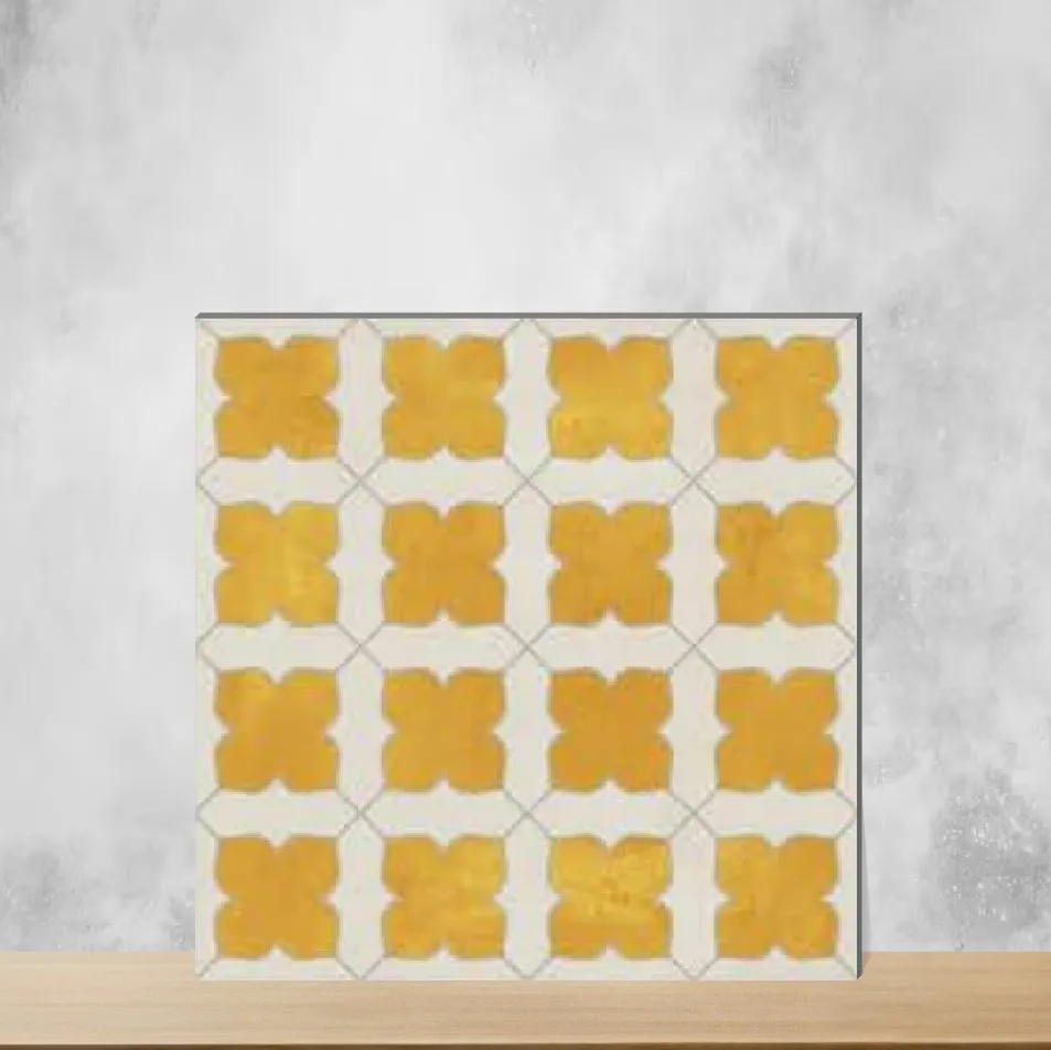 12x12 inch (1 ft x 1 ft) matte ceramic wall tile in a warm yellow Moroccan look. 10 mm thickness provides durable, long-lasting performance for indoor installations. Designed for wall use, this ceramic tile is suitable for both residential & commercial projects and is sold in packs of 11 pieces.