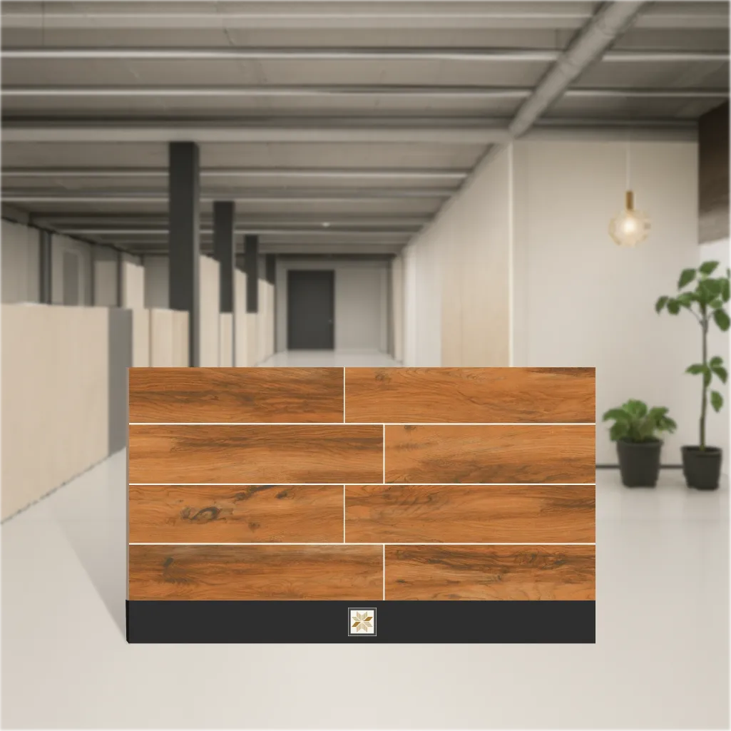 Details: Brown Wood Tile - Dacota Pine wood-effect vitrified tile in a warm brown tone, sized 48x8 inch (4 ft x 7.8 inch / 1200 x 200 mm) with a carved matte finish. This 9 mm thick vitrified plank blends the look of natural wood with the durability of tile, making it ideal for both residential & commercial projects. Pack quantity: 5 pieces. The vitrified base material ensures low porosity, stain resistance and easy maintenance while the wooden effect and carving detail deliver an authentic wood appearance. Highlights: - Wood-look Brown color (Dacota Pine) with carved matte finish for realistic texture and reduced glare. - Vitrified construction for enhanced strength, moisture resistance and long life. - 9 mm thickness suitable for medium to heavy traffic including parking and terrace areas. - Large plank format 48x8 inch (1200 x 200 mm) offers seamless installation with fewer grout lines. - Suitable for Residential & Commercial use; easy to clean and maintain. Pack of 5 pieces per pack. Usecases: - Parking areas and driveways requiring a durable, stain-resistant surface with a wood aesthetic. - Terraces, balconies and outdoor living spaces where a weather-resistant wood-look tile is needed. - Interior flooring for homes (living rooms, corridors, bedrooms) to achieve a wooden appearance with low upkeep. - Commercial spaces such as showrooms, offices and retail areas that demand a robust, attractive flooring option.