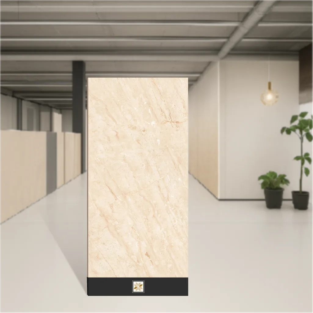 Details: Beige Terez Dayna from Decor Station blends the rich look of natural marble with the strength of vitrified tile. These glossy 4x2 feet (1200x600 mm) tiles, 9 mm thick and supplied in packs of 2, reflect light beautifully to uplift interiors while remaining affordable and budget friendly. The realistic marble pattern and large-format size reduce grout lines for a seamless, contemporary appearance. Constructed from a vitrified body, the tile delivers long-lasting durability, stain resistance and protection against moisture—an economical choice that balances style with practical performance for modern homes and commercial settings. Highlights: - Marble look with intricate, realistic patterns that enhance elegance - Glossy finish to amplify light reflection and visual appeal - Large format (4 ft x 2 ft) reduces grout lines for a near-seamless layout - Vitrified construction: durable, stain-resistant and moisture-proof - 9 mm thickness for a robust yet slim profile - Budget friendly and value-for-money solution for floors and walls Usecases: - Living rooms: creates a sophisticated central space - Bedrooms: brings a calm, elegant atmosphere - Bathrooms: moisture-resistant surface ideal for wet areas (indoor use) - Hallways, dining areas and other common spaces: large tiles for expansive, cohesive floors - Suitable for residential and commercial indoor applications; works both as floor and wall tile (Beige color, glossy marble look)"