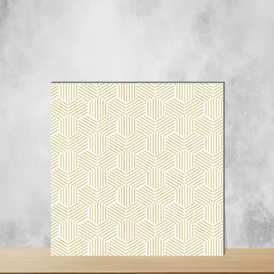 Patterned Look floor and wall tile from the Geometric & Abstracts series in a soft cream tone. These vitrified tiles measure 2x2 feet (600 x 600 mm) with a 9 mm thickness and a matt finish, offering a durable, low-porosity surface suitable for indoor residential & commercial projects. Each pack contains 4 pieces, designed to deliver the patterned decor 11 aesthetic while maintaining long-lasting performance for both floor and wall applications.