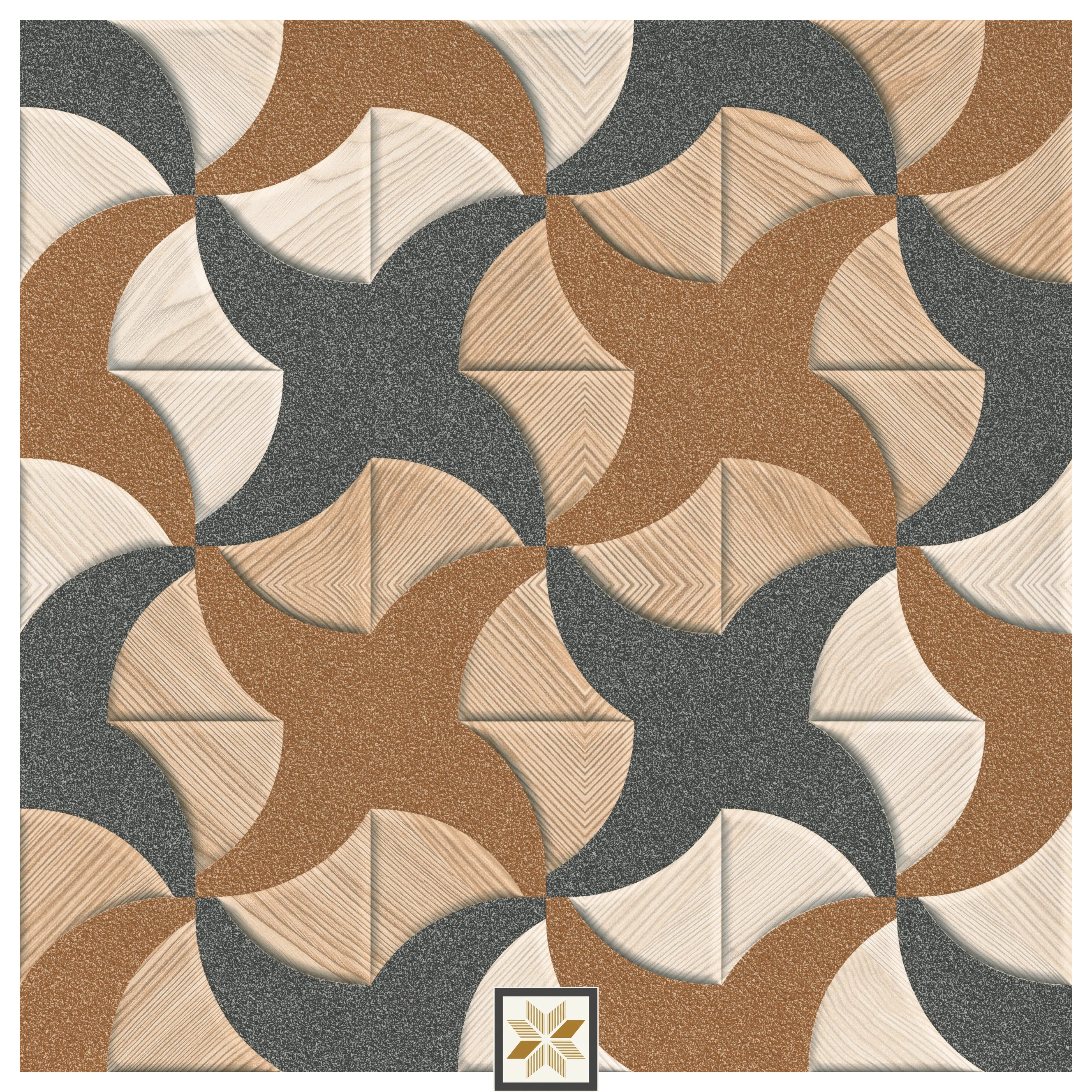 Vitrified Star Brown Geometric & Abstracts Matt Square Tiles TL-3252 (12x12 inch | 8 mm)
