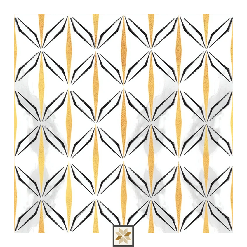 Morissa Golden Black Fly is a 1 ft x 1 ft (12x12 inch) Moroccan-inspired floor and wall tile that brings an exotic geometric look in golden and black tones. Manufactured from a vitrified ceramic body, it offers moisture resistance and long-lasting durability. The 8 mm thickness and matte, slightly abrasive finish create a non-shiny surface with enhanced grip while preserving a designer Moroccan aesthetic. Supplied in packs of 8 pieces, these tiles are suited for easy installation and flexible layouts in both residential and commercial settings.