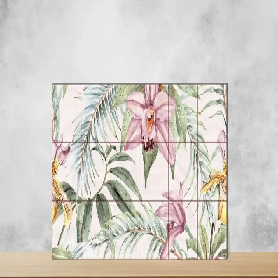 Details: Floral Wall Tile TL 06553 Dove Pink HL02 - A is a 24x12 inch (2 ft x 1 ft) ceramic wall tile from the Tropical Florals series. This rectangular, dove pink tile features a glossy finish and an 8 mm thickness for reliable wall installation. Designed for indoor use in both residential and commercial projects, the tile combines a soft floral look with easy-to-clean ceramic performance. SKU: TL-5837-F, sold in packs of 5 pieces. Highlights: - 24x12 inch (2 ft x 1 ft) ceramic wall tile with glossy finish - 8 mm thickness for stable, durable wall application - Tropical Florals series — Dove Pink floral design (HL02) - Rectangular shape, specifically made for wall surfaces - Indoor use suitable for living room, kitchen and bathroom - Pack quantity: 5 pieces per pack Usecases: - Create a floral feature wall in living rooms to add a soft, decorative focal point - Use as a splashback or accent wall in kitchens for a stylish, easy-to-clean surface - Install on bathroom walls and shower surrounds where glossy ceramic resists moisture - Ideal for residential and light commercial interiors seeking a floral, pink aesthetic