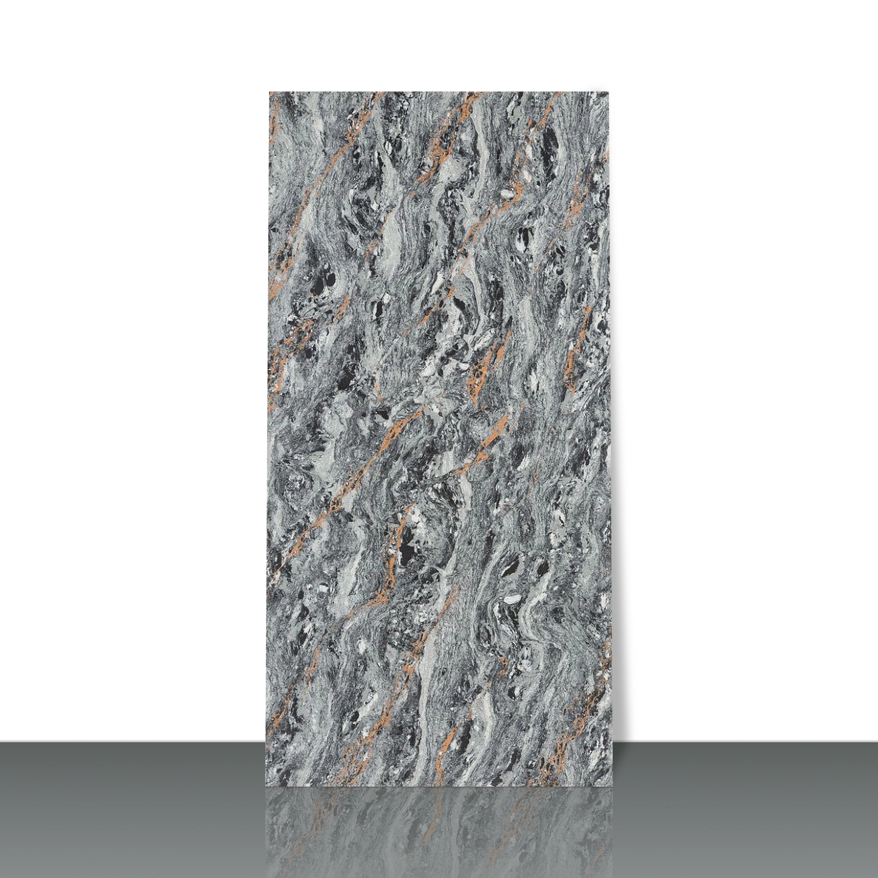 Vitrified Dualcore Metal Grey Marbles & Stones Glossy Rectangular Tiles TL-2404 (4x2 feet | 9 mm)