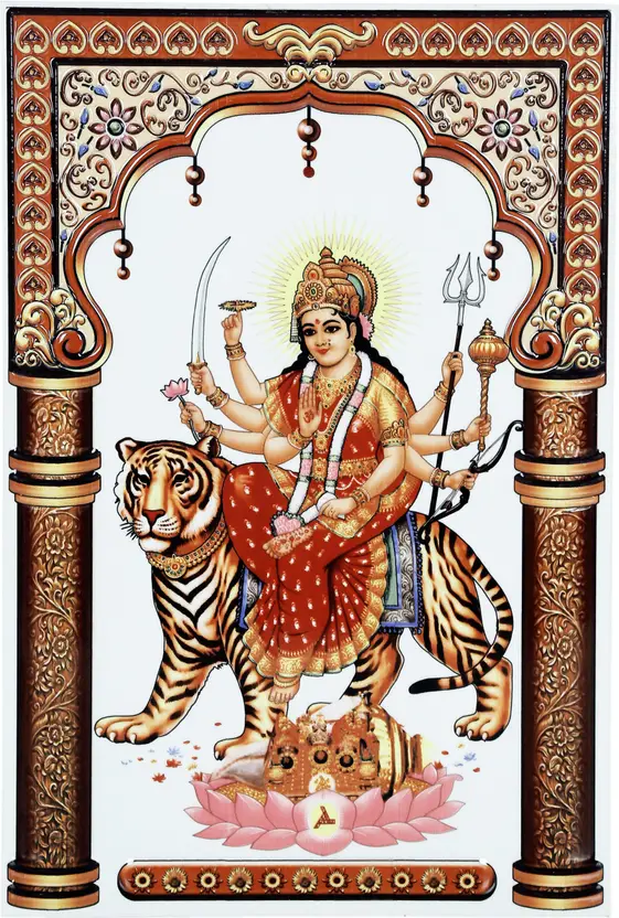 Ceramic Durga Maa Ambe Sherawali God Tiles Matt Rectangular Tiles TL-24622 (10x15inch | 6 mm)