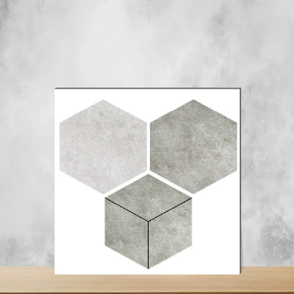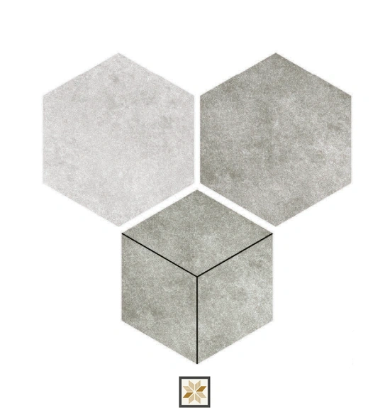 Details: Fellow Touch Gray from the Hexa Harmony Collection is a hexagonal wall tile that delivers a cement-like, rustic character to interiors. These vitrified 12 x 10 inch tiles, 9 mm thick, feature a matte, slightly sand-textured surface that gives an industrial Indo-modern appearance while remaining durable and low-maintenance. Engineered with a vitrified body, they offer enhanced toughness and water resistance, making them well suited for indoor residential and commercial wall applications. Highlights: - Hexagonal shape for striking geometric interest and contemporary appeal. - Vitrified construction for long-lasting, water- and wear-resistant performance. - Size: 12 x 10 inches — bold enough for impactful wall layouts and backsplashes. - Thickness: 9 mm for solid installation and lasting stability. - Matte, cement-look finish that creates a rustic industrial aesthetic. - Indoor use; ideal for living room, bedroom, bathroom, kitchen and balcony walls. Usecases: - Bathroom and kitchen walls and backsplashes where a waterproof, easy-care surface is required. - Living room, bedroom and dining walls to introduce a vintage-industrial or modern geometric statement. - Balconies and transitional areas that benefit from a durable, designer wall tile. - Commercial interiors such as offices and hospitality spaces seeking an attractive, hard-wearing wall finish.