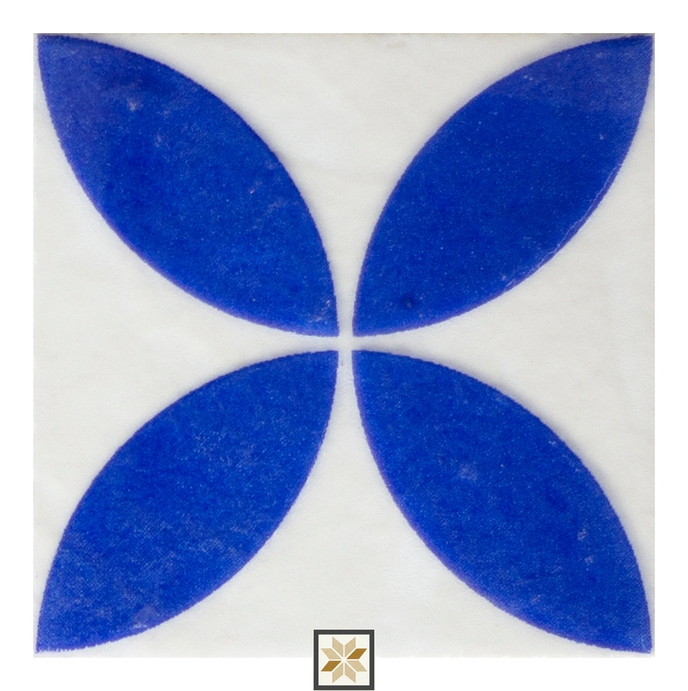 Details: Geometric Wall & Floor Tile from the Geometric & Abstracts series featuring the Abstract Petal Azure Harmony motif. Compact 98 mm x 98 mm (4x4 inch) square vitrified tile with a 9 mm thickness, designed for both walls and floors. Available in 6 random patterns to create a varied, natural-looking layout. Durable, low-porosity vitrified body in an azure/blue palette—suitable for residential and commercial indoor installations. Pack contains 12 pieces. Highlights: - Vitrified construction for enhanced strength, stain resistance and low water absorption - 9 mm thickness provides robust performance for floor and wall use - 98 x 98 mm (4x4") square size ideal for detailed patterns and borders - Six random patterns offer visual variety and reduce repetitive appearance - Versatile indoor use: living room, bedroom, kitchen, bathroom, dining and office - Easy to clean and maintain, ideal for high-traffic residential and light commercial areas Usecases: - Create feature walls or backsplashes in kitchens and bathrooms using the Abstract Petal Azure Harmony design - Install as floor tiles in small areas such as balconies, powder rooms or entryways for geometric interest - Mix the 6 random patterns across a living room or bedroom floor to produce a custom, mosaic-like look - Use in commercial spaces like boutique shops, cafes or office reception areas to add a modern geometric statement