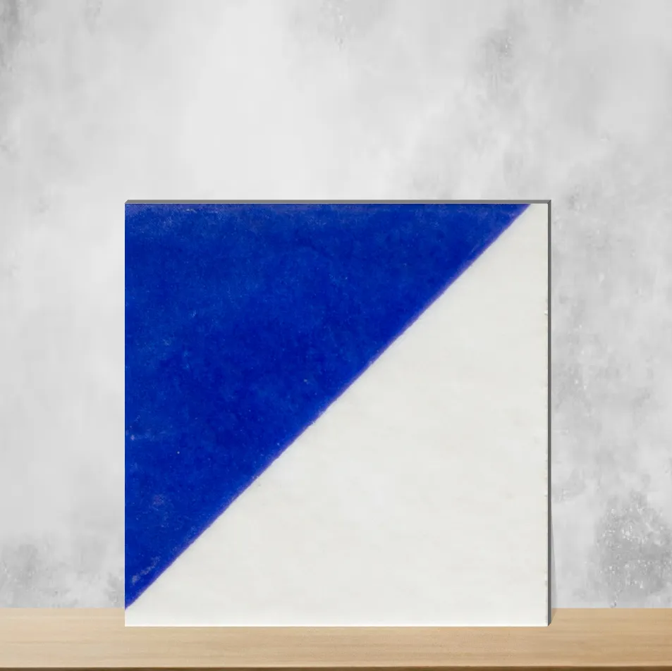 Details: The Geometric Wall & Floor Tile — Bold Slash Azure Harmony — is a vitrified, square 98 mm x 98 mm (4x4 inch), 9 mm thick tile designed for both wall and floor use. From the Geometric & Abstracts series, this blue/azure design comes in 6 random patterns to create a varied, contemporary geometric look. Supplied in packs of 12 pieces, the tile suits residential and commercial indoor projects and works well across multiple surfaces. Highlights: - Vitrified construction with 9 mm thickness for long-lasting durability and easy maintenance - Bold Slash Azure Harmony pattern offers a striking geometric aesthetic in blue tones - Six random patterns per design ensure a non-repetitive, custom appearance - Compact 98 mm x 98 mm (4x4 inch) square format ideal for detailed layouts, borders and accents - Suitable for both wall and floor applications (tiles_surface: Wall & Floor) - Indoor use, appropriate for residential & commercial spaces Usecases: - Create a feature wall, backsplash or accent panel in kitchens and bathrooms using the Bold Slash Azure Harmony tiles - Install as a patterned floor or border in living rooms, bedrooms and dining areas to introduce color and geometric interest - Use in small commercial settings and offices to provide a durable, decorative surface - Combine the 6 random patterns across corridors or seating areas to achieve a bespoke, dynamic installation Suitable For: Living Room, Bedroom, Kitchen, Bathroom, Dining, Office Pack Quantity: 12 Piece Base Material: Vitrified Shape & Size: Square, 98 mm x 98 mm (4x4 inch)