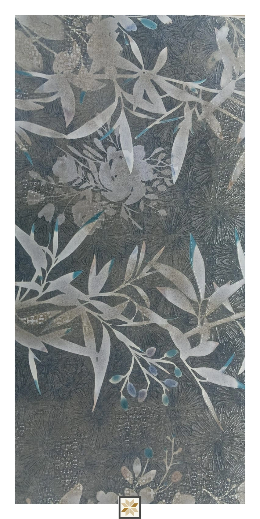 Ceramic Midnight Bloom Cement Look Glossy Rectangular Tiles TL-9728-A (24x12 inch | 9 mm)