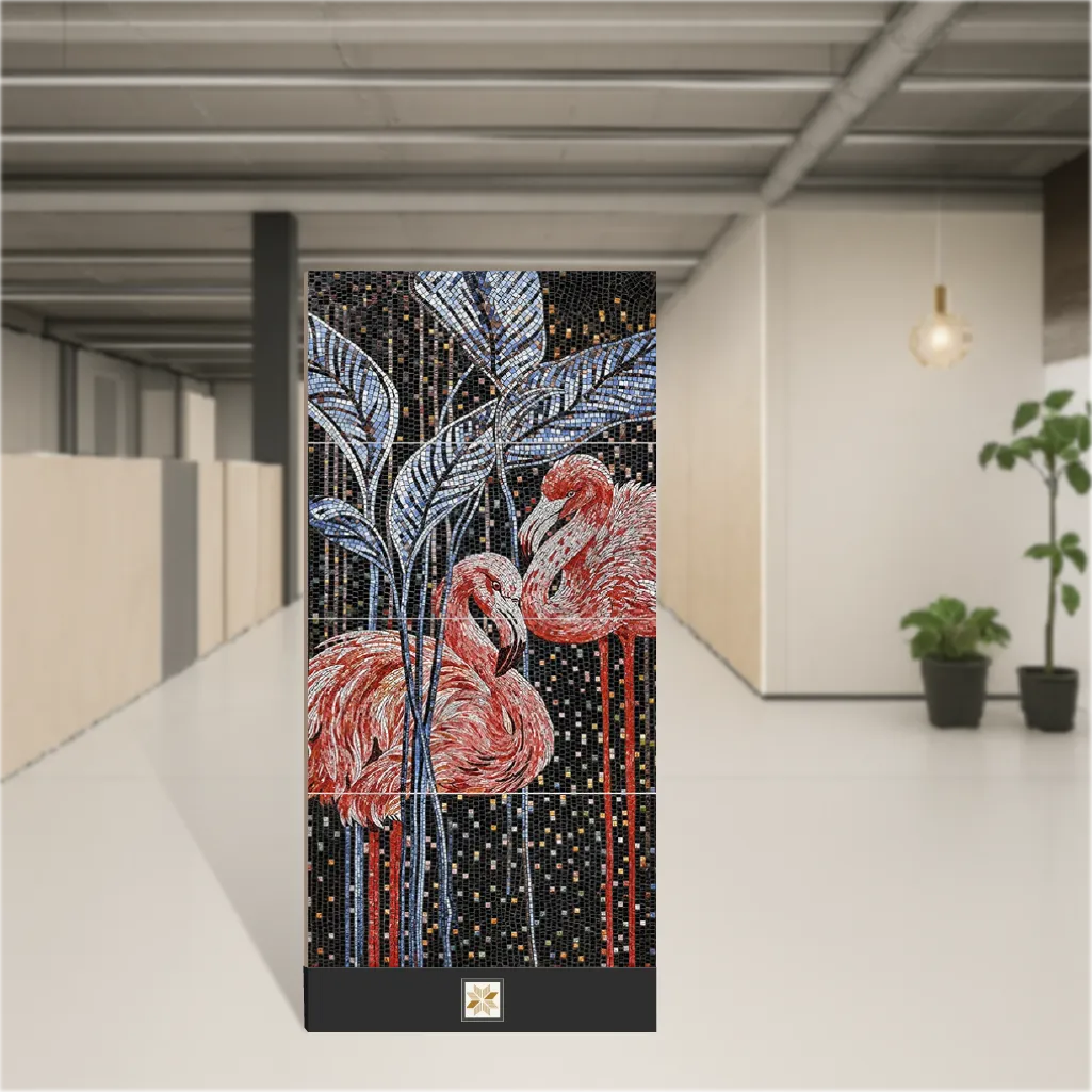 Details: Flamingo mosaic wall tile in multi colour combines a vitrified base with a glossy punch finish for durable, low-maintenance wall coverage. Each tile measures 4x2 feet (1200 x 600 mm) with a 9 mm thickness and is supplied in packs of 4 pieces. Designed for indoor applications in residential & commercial projects, the mosaic look and vitrified construction deliver strength, moisture resistance and a high-shine appearance suitable for wall installations. Highlights: - Multi Colour mosaic pattern that acts as a visual highlighter - Vitrified material for enhanced durability and easy upkeep - Glossy punch finish for a reflective, stain-resistant surface - Large 4x2 feet tile size (1200 x 600 mm) for faster coverage - 9 mm thickness optimized for wall use - Sold in packs of 4 pieces; intended for indoor wall surfaces Usecases: Ideal for creating feature or accent walls in living rooms, bedrooms and offices. Well suited for reception areas, commercial lobbies, bedroom backsplashes and other indoor wall cladding where a mosaic highlight, glossy finish and resilient vitrified surface are desired.