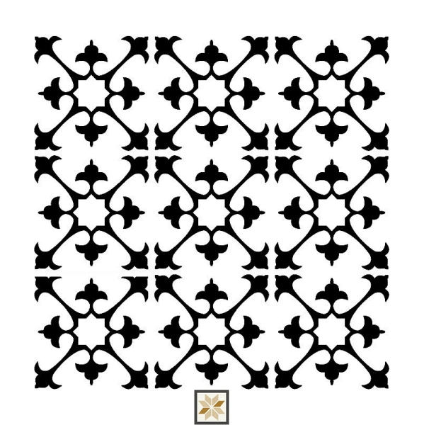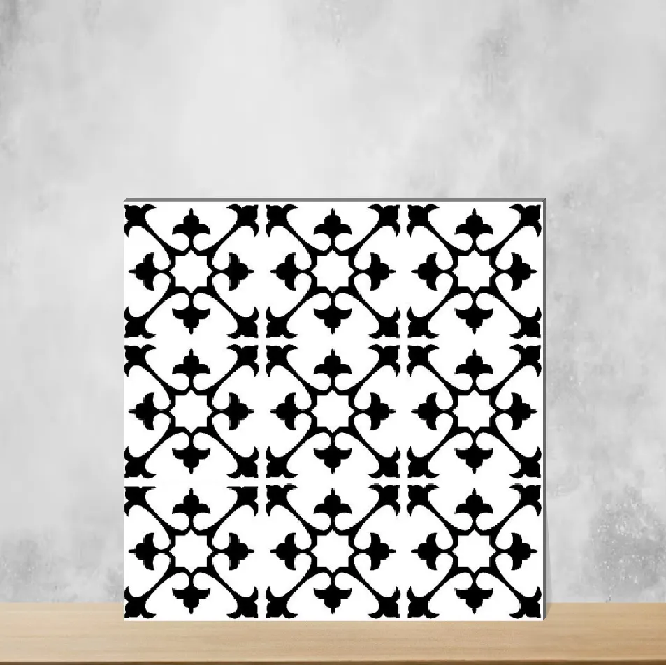 Vitrified Floc Black & White Moroccans Matt Square Tiles TL-2135 (8x8 inch | 9 mm)
