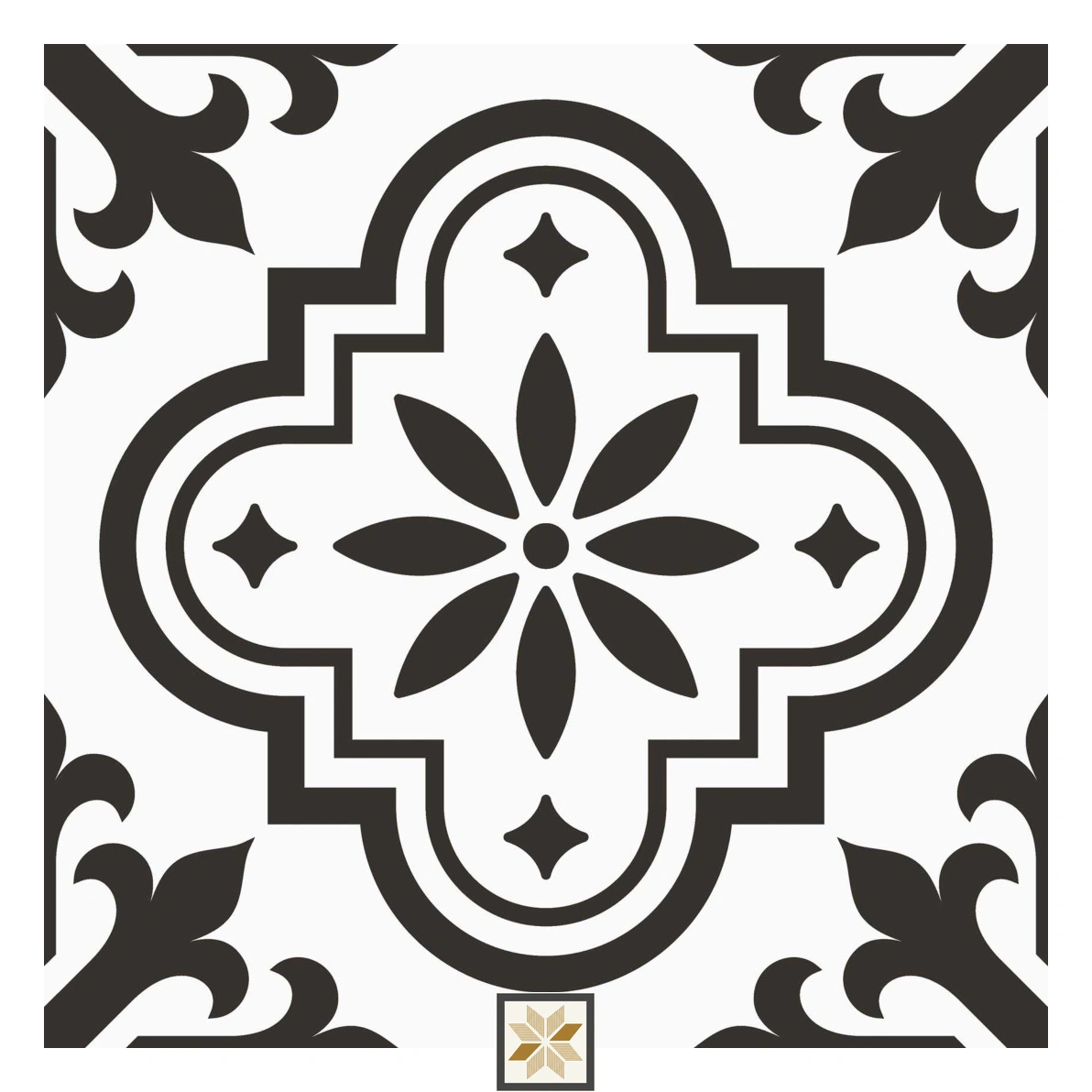 Vitrified Zellige Floral Lines Moroccans Matt Square Tiles TL-4538-C (12x12 inch | 9 mm)