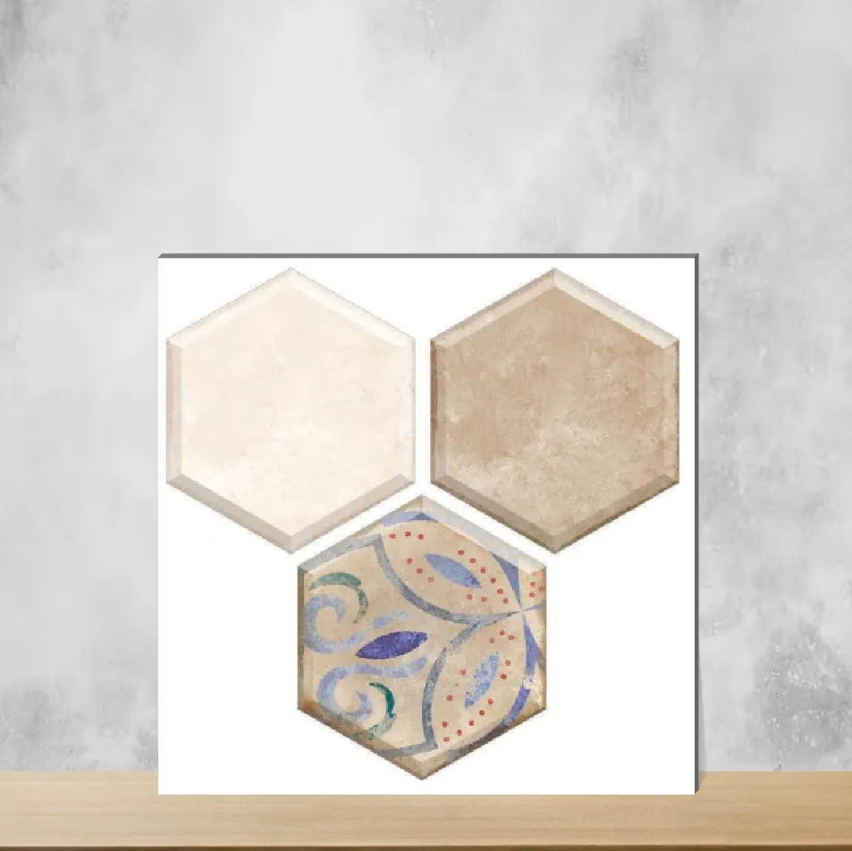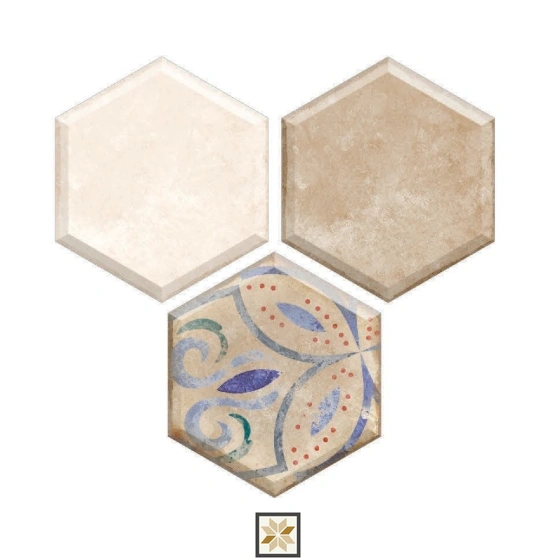 Details: Framery Flora from the Hexa Harmony Collection is a hexagonal wall tile engineered to bring a 3D, rustic-industrial appeal to interiors. These 12 x 10 inch tiles are manufactured from a vitrified body for enhanced toughness and water resistance, finished in a matte, slightly textured surface that resembles cement. At a 9 mm thickness and available in multi colour, they are designed for indoor wall use across residential and commercial projects, including living room, bedroom, bathroom, kitchen & balcony. Pack quantity: 13 pieces. Highlights: - Hexagonal shape for contemporary geometric and 3D visual interest. - Vitrified body: long-wearing and water resistant for high-traffic and wet areas. - Size: 12 x 10 inch — bold enough for striking patterns yet versatile for layouts and prints. - Thickness: 9 mm for durability and solidity. - Finish: Matte, rough-to-touch texture for an industrial, rustic look. - Series: 3D Tiles; indoor wall use only; suitable for residential & commercial projects. Usecases: - Bathroom walls and kitchen backsplashes where moisture resistance and durability are required. - Balconies and utility areas that benefit from a rugged, stylish wall surface. - Bedrooms, living and dining areas to introduce a vintage/industrial 3D focal wall. - Commercial interiors such as offices and lobbies seeking modern geometric tiling.