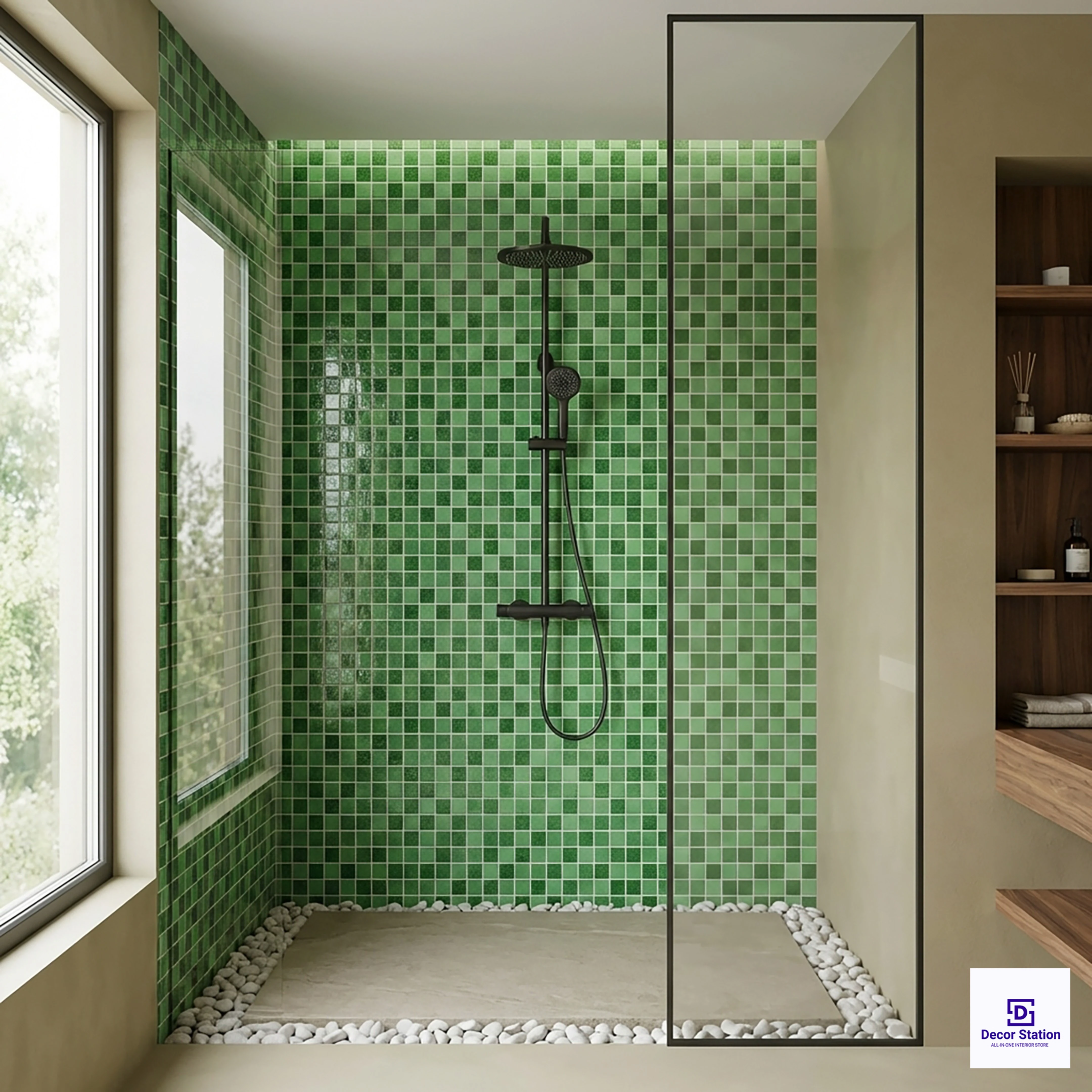 GMT-777 Green Grid-Style Glass Mosaic 1x1 ft 4mm tile is a digital wall tile with a matt finish, featuring a mosaic design with elegant Green tones. It has a size of 327x327 mm (1x1 ft) with a thickness of 4 mm, making it suitable for both indoor and outdoor use. This square tile has a matt finish, which provides a refined, matte surface ideal for feature walls while ensuring easy maintenance. Highlights:- Artistic Green mosaic design for a striking visual impact- Matt finish for a smooth, non-reflective, contemporary look- Digital print for realistic and detailed artistic reproduction - Made from glass for light reflection, vibrant color depth, and water resistance - Available in square format for versatile installation patterns - Suitable for both indoor and outdoor use with water-resistant feature Usecases:- Outdoor feature walls and facades - Garden and landscape accent areas - Exterior bathroom and utility spaces - Commercial outdoor spaces - Terrace and patio accent walls