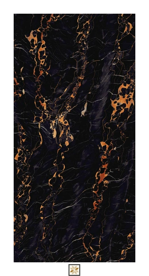 Vitrified Portaro Black Marbles & Stones Hi-Glossy Rectangular Tiles TL-2410 (4x2 feet | 9 mm)